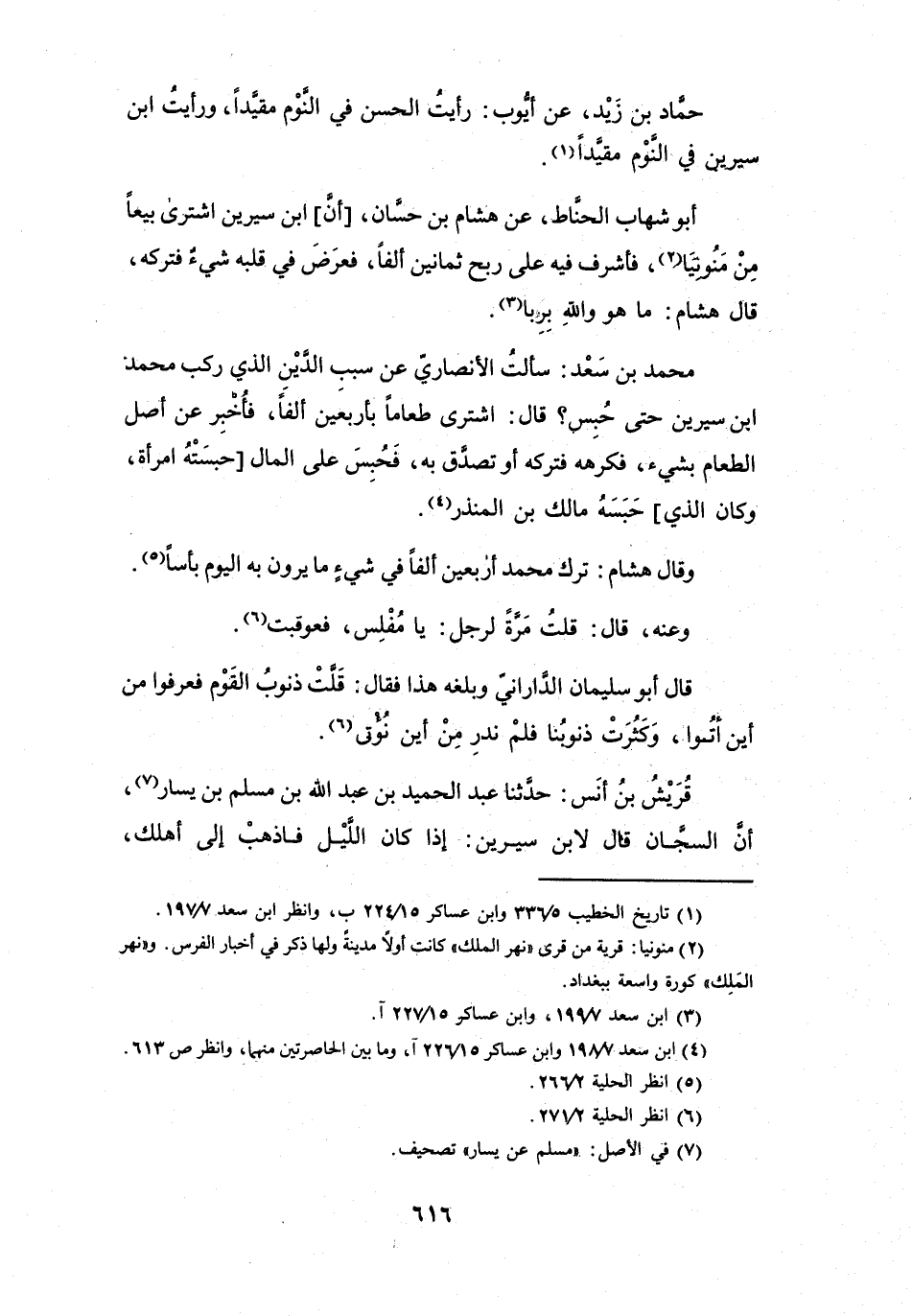 رَأَيْت الحَسَنَ فِي النَّوْمِ مُقَيَّداً، وَرَأَيْتُ ابْنَ سِيْرِيْنَ فِي النَّوْمِ مُقَيَّداً (1) .