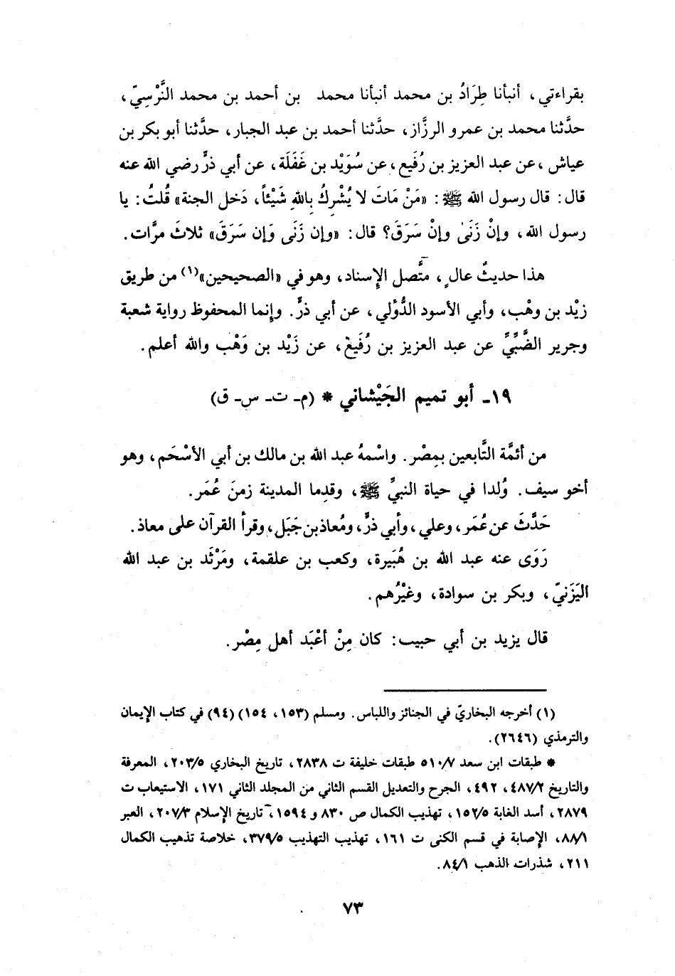 19 - أَبُو تَمِيْمٍ الجَيْشَانِيُّ عَبْدُ اللهِ بنُ مَالِكٍ * (م، ت، س، ق)