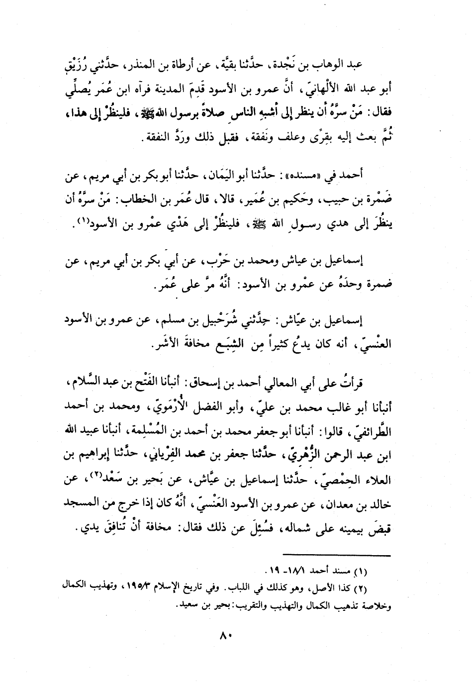 قَالَ عُمَرُ بنُ الخَطَّابِ: مَنْ سَرَّهُ أَنْ يَنْظُرَ إِلَى هَدْيِ رَسُوْلِ اللهِ -صَلَّى اللَّهُ عَلَيْهِ وَسَلَّمَ- فَلْيَنْظُرْ إِلَى هَدْيِ عَمْرِو بنِ الأَسْوَدِ (1) .