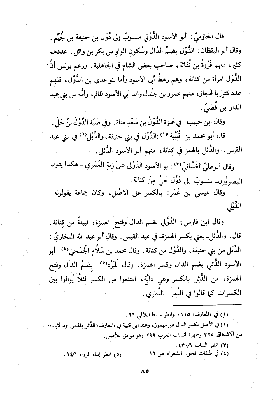 (2) في الأصل بكسر الدال غير مهموز، وعند ابن قتيبة في " المعارف " الدئل بالهمز. وما أثبتناه من الاشتقاق 325 وجمهرة أنساب العرب 299 وهو موافق للأصل.