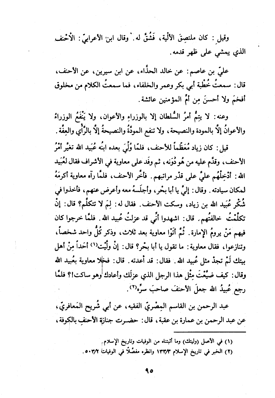 وَأَجْلَسَهُ مَعَهُ، وَأَعْرَضَ عَنْهُم، فَأَخَذُوا فِي شُكْرِ عُبَيْدِ اللهِ بنِ زِيَادٍ، وَسَكَتَ الأَحْنَفُ.