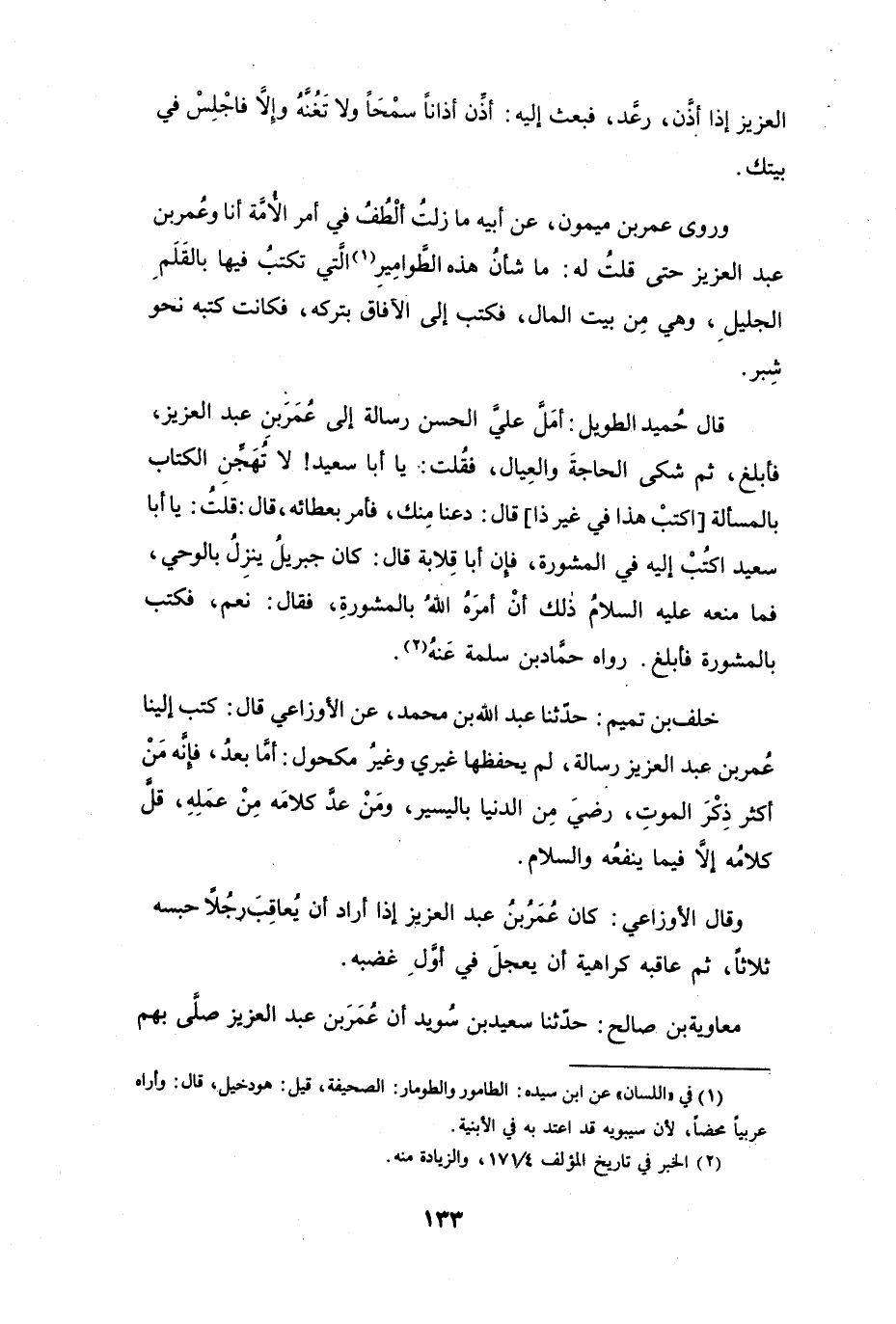 مَا زِلْتُ أَلْطُفُ فِي أَمْرِ الأُمَّةِ أَنَا وَعُمَرُ بنُ عَبْدِ العَزِيْزِ حَتَّى قُلْتُ لَهُ: مَا شَأْنُ هَذِهِ الطَّوَامِيْرِ (1) الَّتِي تَكْتُبُ فِيْهَا بِالقَلَمِ الجَلِيْلِ، وَهِيَ مِنْ بَيْتِ المَالِ؟!