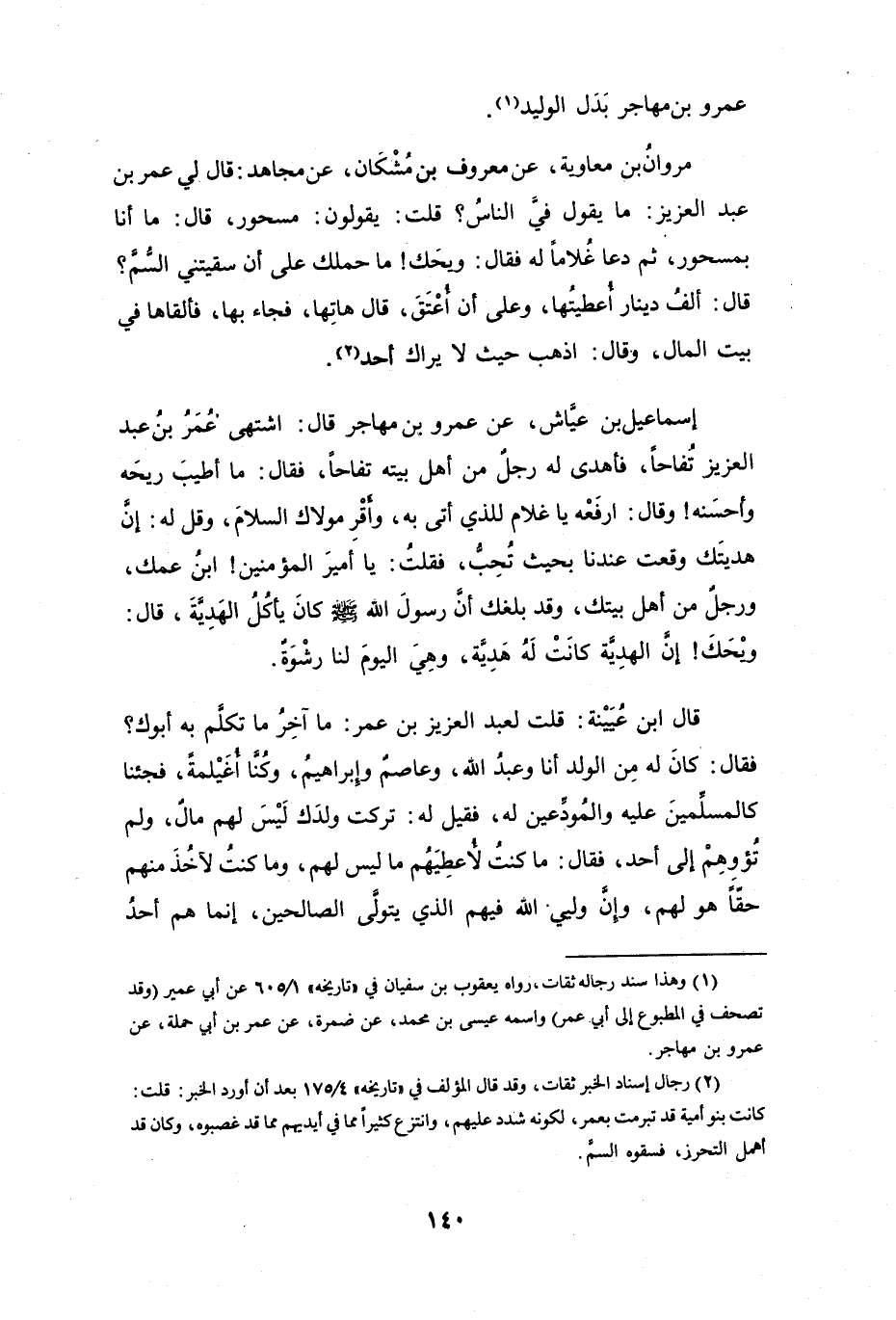 (1) وهذا سند رجاله ثقات، رواه يعقوب بن سفيان في " تاريخه " 1 / 605 عن أبي عمير (وقد تصحف في المطبوع إلى أبي عمر) واسمه عيسى بن محمد، عن ضمرة، عن عمر بن أبي حملة، عن عمرو بن مهاجر.