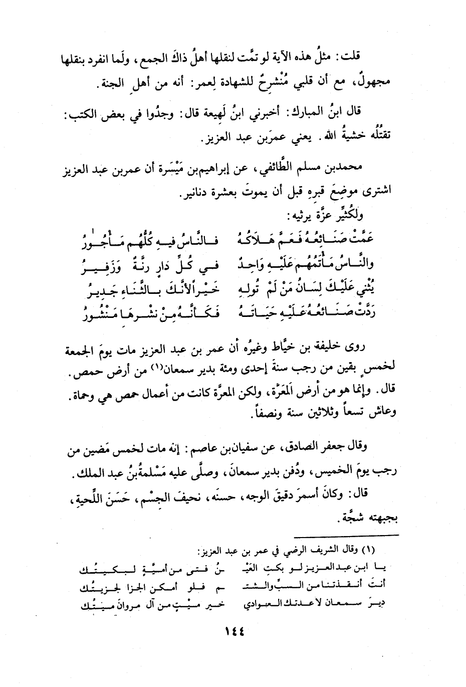 (1) وقال الشريف الرضي في عمر بن عبد العزيز: