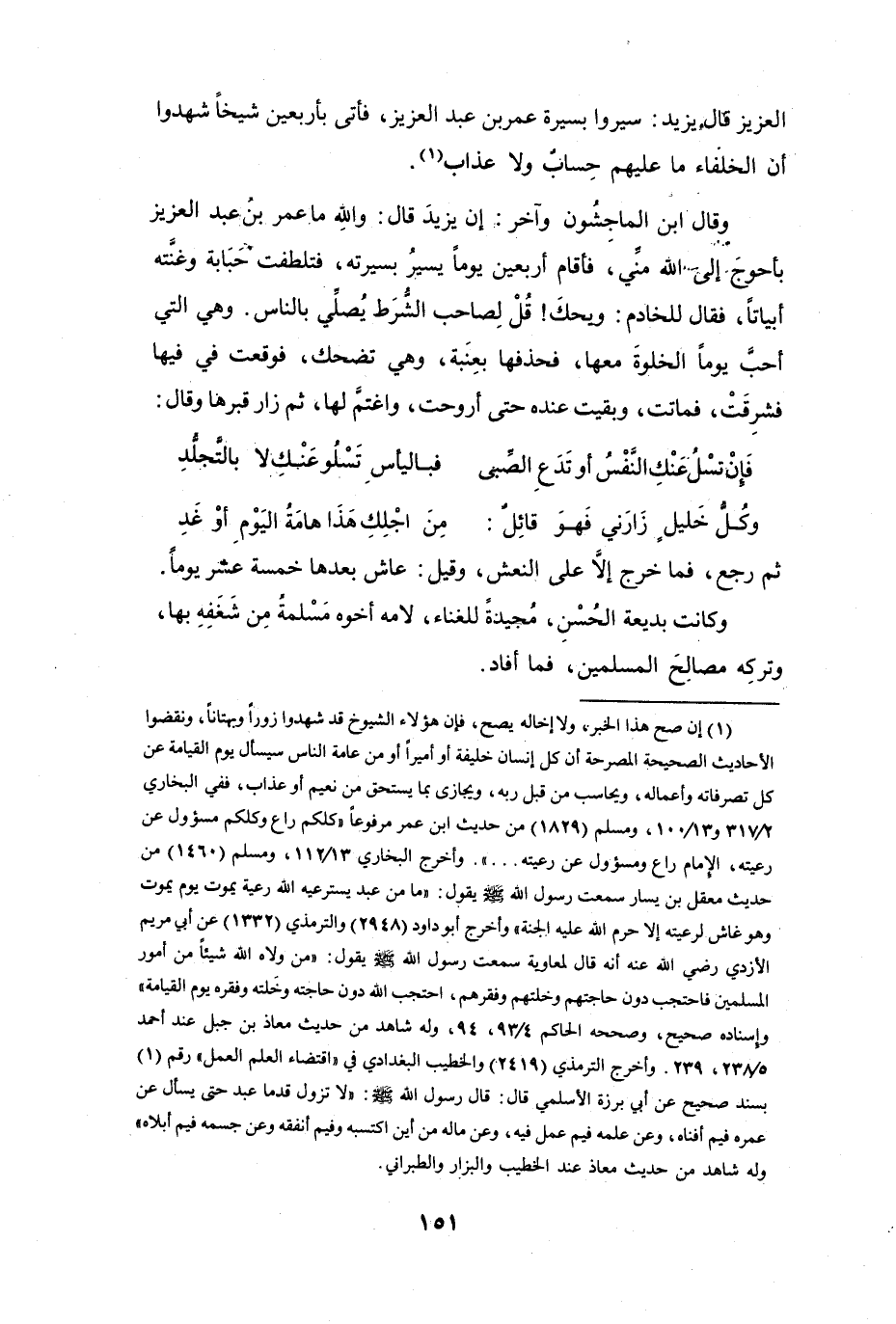 العَزِيْزِ، قَالَ يَزِيْدُ: سِيْرُوا بِسِيْرَةِ عُمَرَ بنِ عَبْدِ العَزِيْزِ، فَأَتَى بِأَرْبَعِيْنَ شَيْخاً شَهِدُوا أَنَّ الخُلَفَاءَ مَا عَلَيْهِم حِسَابٌ وَلاَ عَذَابٌ (1) .