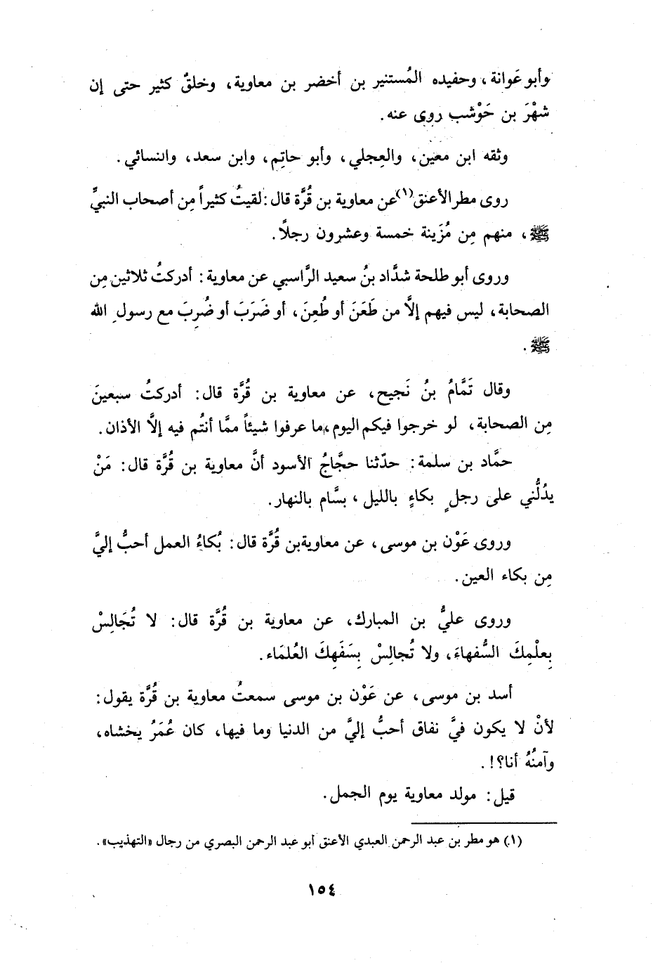 رَوَى: مَطَرٌ الأَعْنَقُ (1) ، عَنْ مُعَاوِيَةَ بنِ قُرَّةَ، قَالَ: