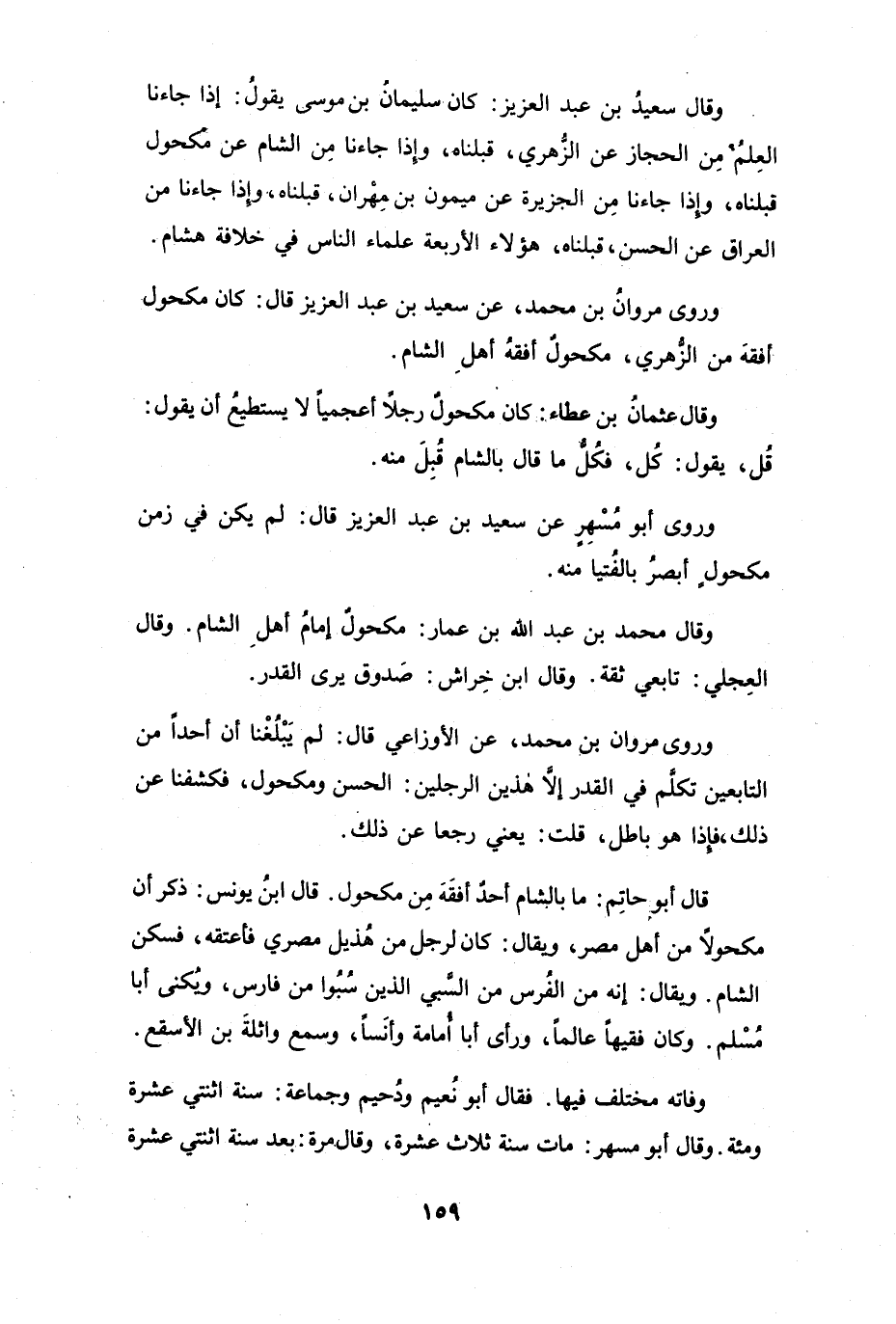 قَالَ أَبُو حَاتِمٍ: مَا بِالشَّامِ أَحَدٌ أَفْقَهُ مِنْ مَكْحُوْلٍ.