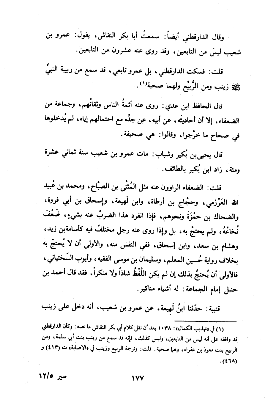 قُلْتُ: فَسَكَتَ الدَّارَقُطْنِيُّ، بَلْ عَمْرٌو تَابِعِيٌّ، قَدْ سَمِعَ مِنْ رَبِيْبَةِ النَّبِيِّ -صَلَّى اللَّهُ عَلَيْهِ وَسَلَّمَ- زَيْنَبَ، وَمِنَ الرُّبَيِّعِ، وَلَهُمَا صُحْبَةٌ (1) .