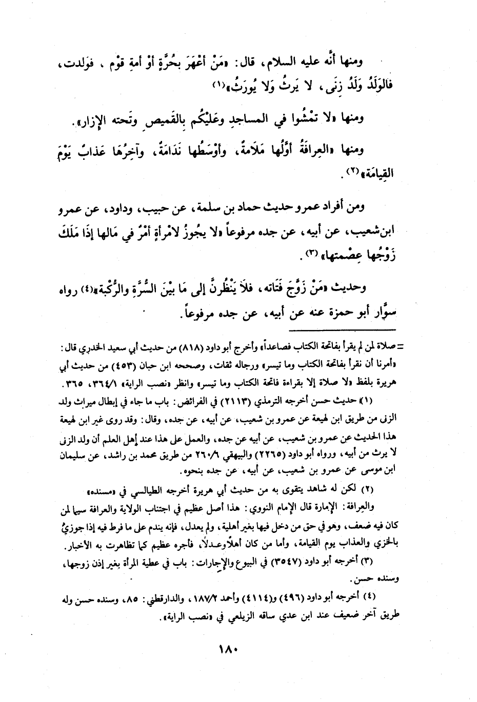 (1) حديث حسن أخرجه الترمذي (2113) في الفرائض: باب ما جاء في إبطالا ميراث ولد الزنى من طريق ابن لهيعة عن عمرو بن شعيب، عن أبيه، عن جده، وقال: وقد روى غير ابن لهيعة هذا الحديث عن عمرو بن شعيب، عن أبيه عن جده، والعمل على هذا عند أهل العلم أن ولد الزنى لا يرث من أبيه، ورواه أبو داود (2265) والبيهقي 6 / 260 من طريق محمد بن راشد، عن سليمان