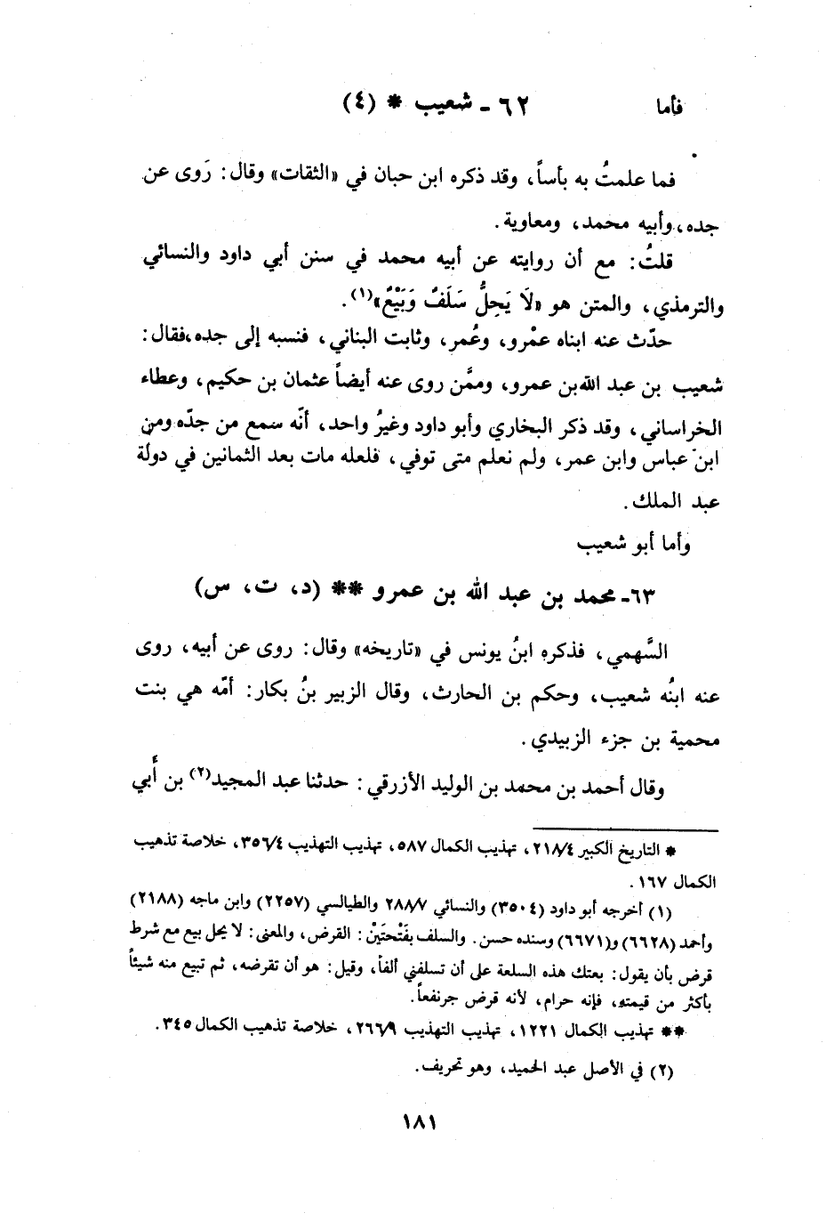 63 - وَأَمَّا: أَبُو شُعَيْبٍ مُحَمَّدُ بنُ عَبْدِ اللهِ بنِ عَمْرٍو السَّهْمِيُّ ** (د، ت، س)