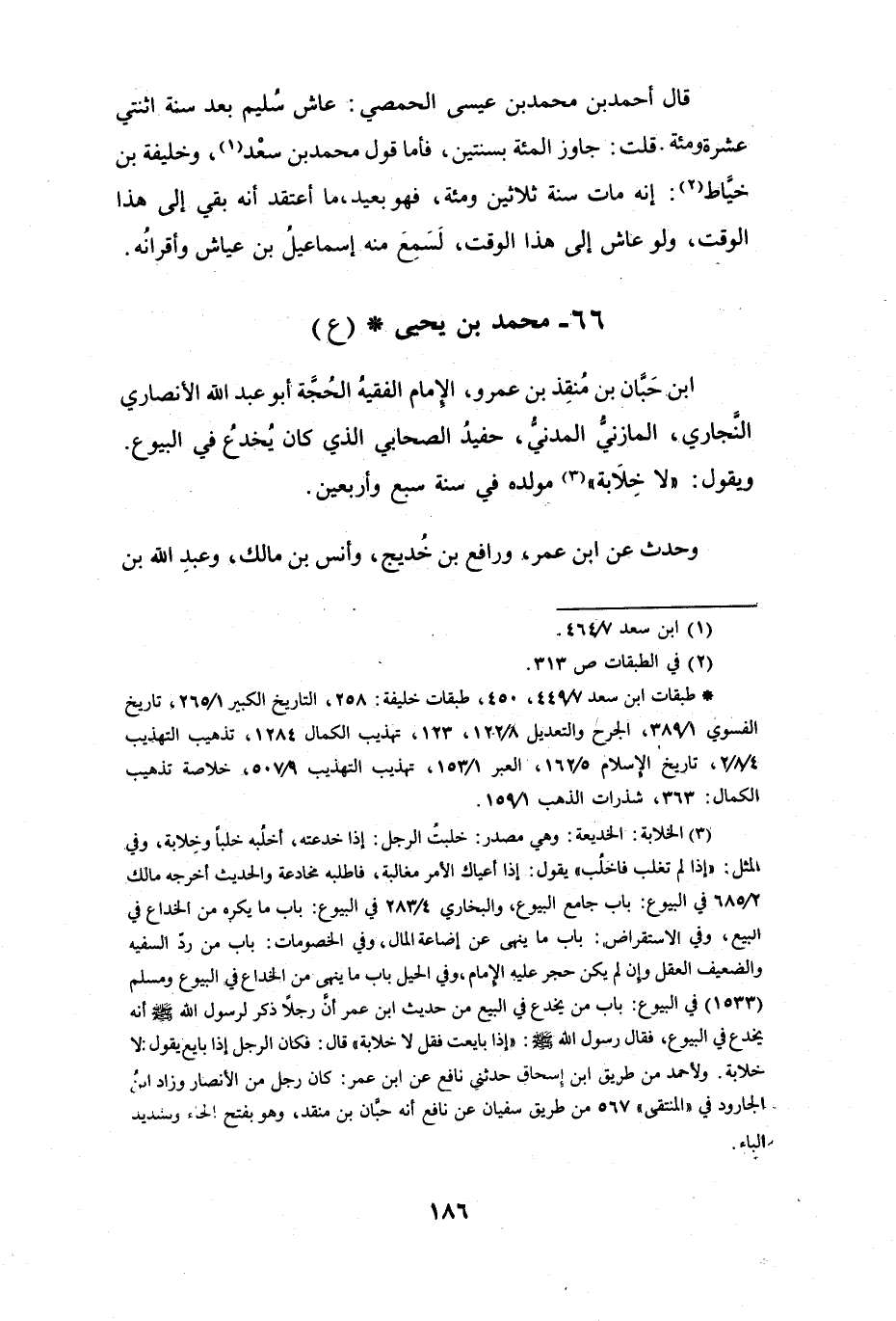 66 - مُحَمَّدُ بنُ يَحْيَى بنِ حَبَّانَ الأَنْصَارِيُّ * (ع)