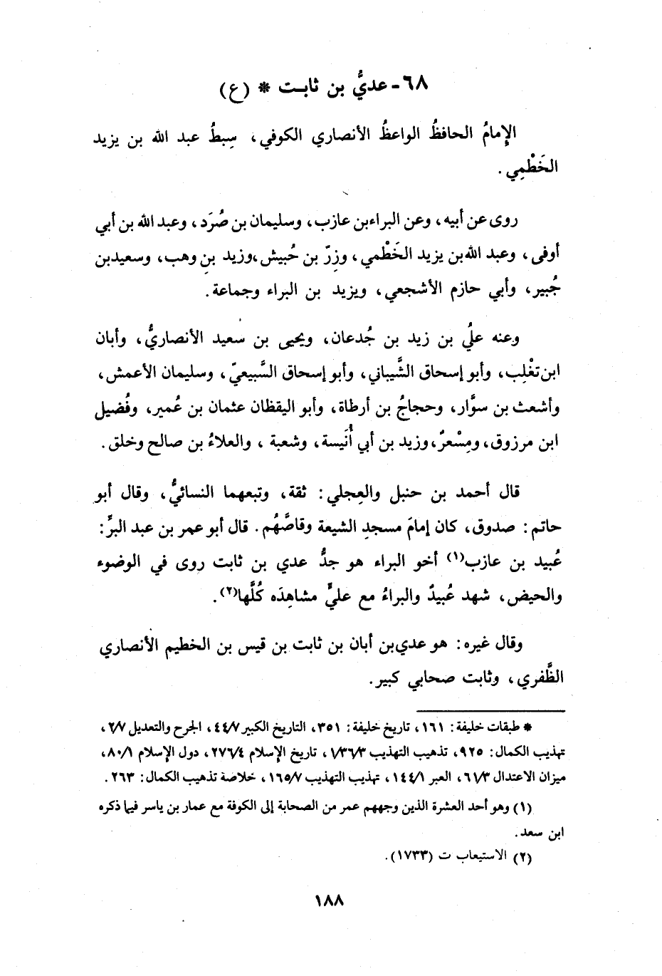 68 - عَدِيُّ بنُ ثَابِتٍ الأَنْصَارِيُّ الكُوْفِيُّ * (ع)