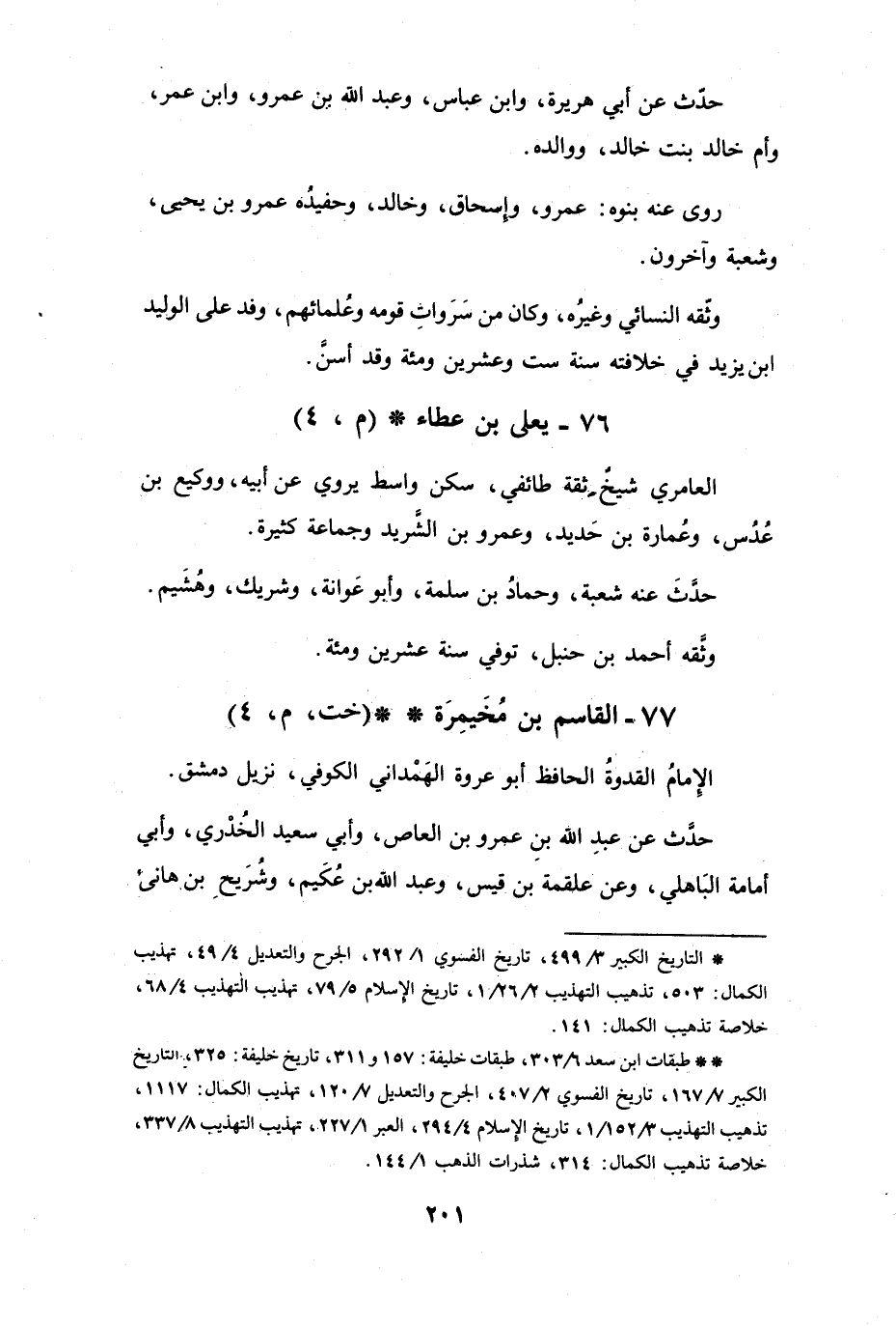 (* *) طبقات ابن سعد 6 / 303، طبقات خليفة: 157 و311، تاريخ خليفة: 325، التاريخ الكبير 7 / 167، تاريخ الفسوي 2 / 407، الجرح والتعديل 7 / 120، تهذيب الكمال: 1117، تذهيب التهذيب 3 / 152 / 1، تاريخ الإسلام 4 / 294، العبر 1 / 227، تهذيب التهذيب 8 / 337، خلاصة تذهيب الكمال: 314، شذرات الذهب 1 / 144.