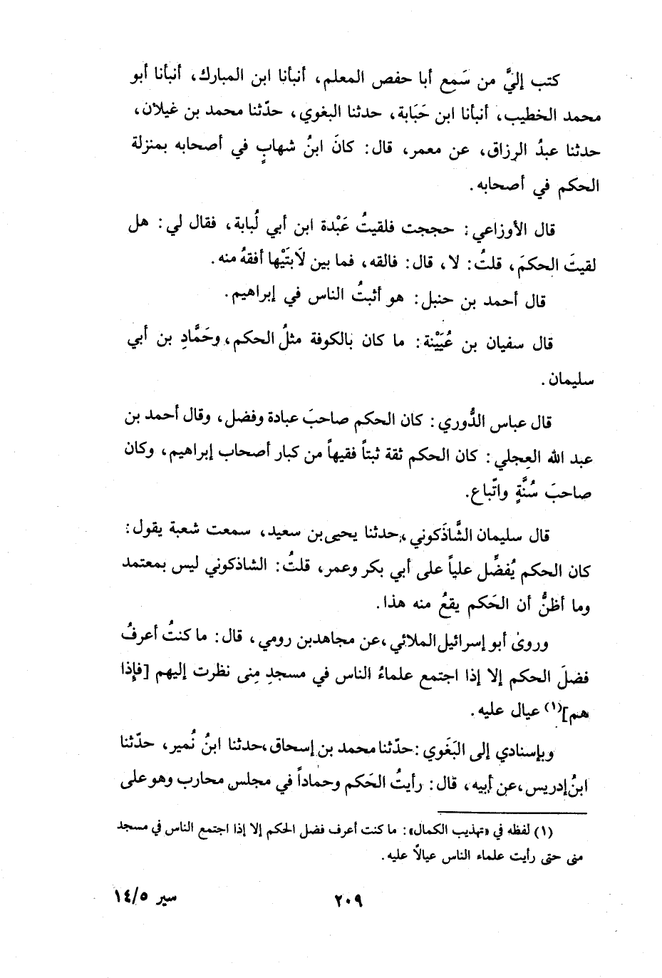 (1) لفظه في " تهذيب الكمال ": ما كنت أعرف فضل الحكم إلا إذا اجتمع الناس في مسجد منى حتى رأيت علماء الناس عيالا عليه.