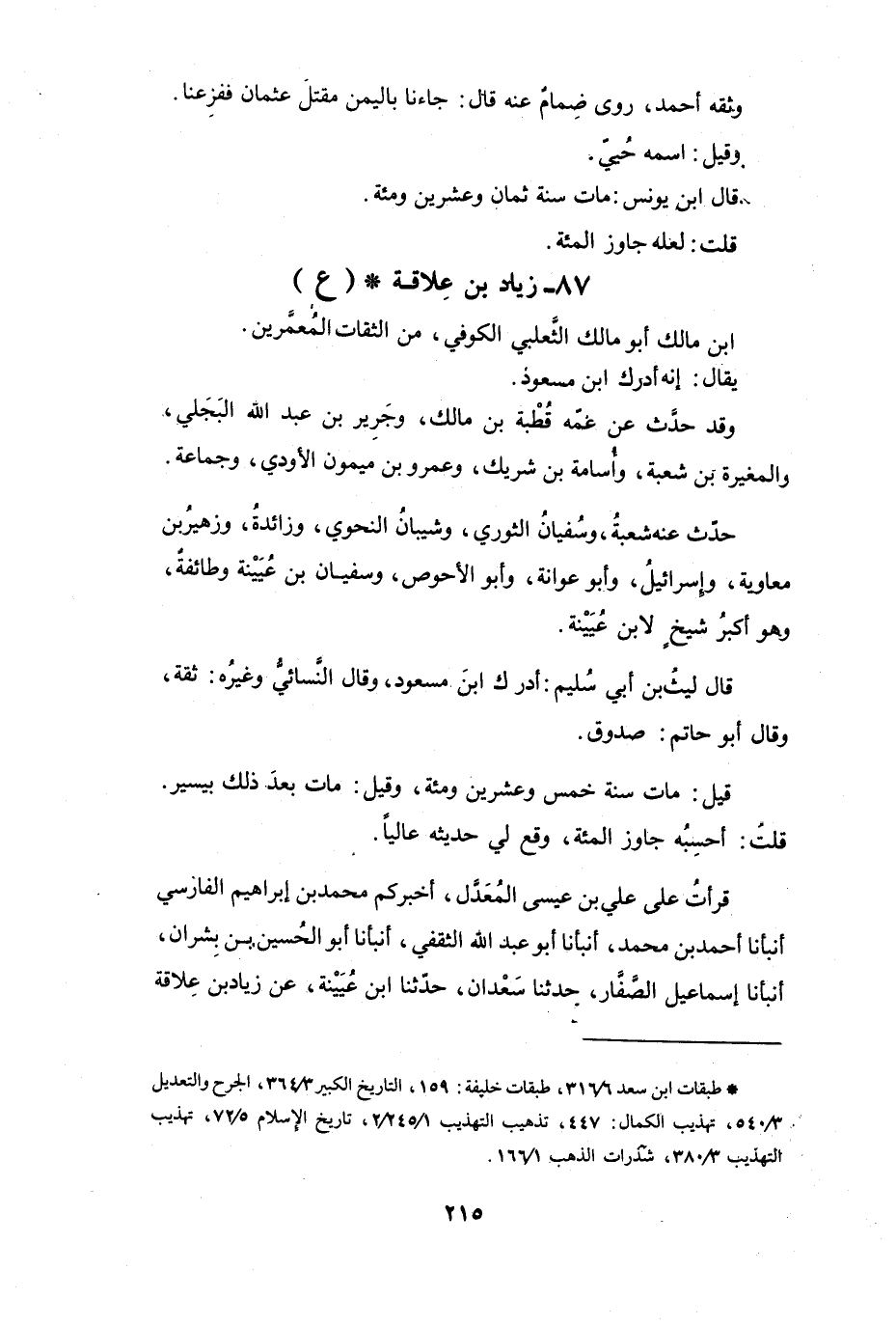 87 - زِيَادُ بنُ عِلاَقَةَ بنِ مَالِكٍ أَبُو مَالِكٍ الثَّعْلَبِيُّ * (ع)