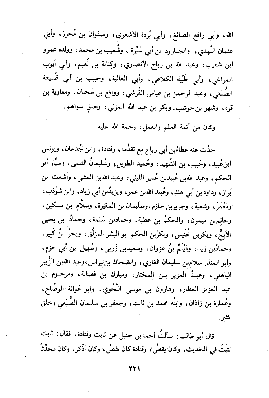 قَالَ أَبُو طَالِبٍ: سَأَلْتُ أَحْمَدَ بنَ حَنْبَلٍ عَنْ ثَابِتٍ وَقَتَادَةَ، فَقَالَ: