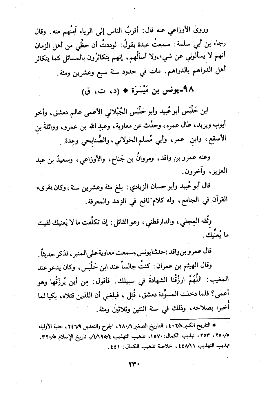 98 - يُوْنُسُ بنُ مَيْسَرَةَ بنِ حَلْبَسٍ الجُبْلاَنِيُّ * (د، ت، ق)