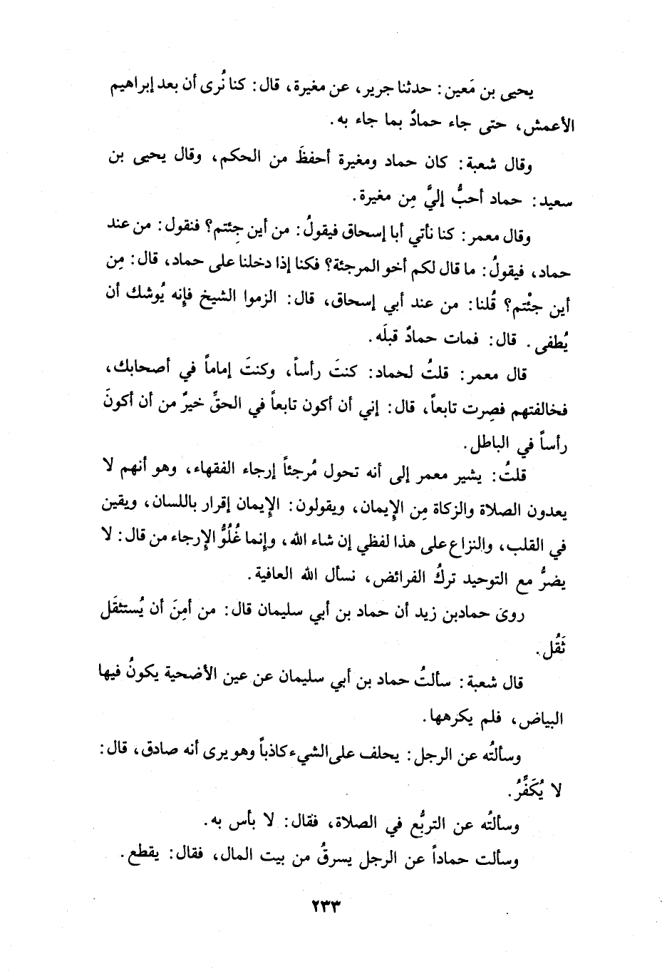 يَحْيَى بنُ مَعِيْنٍ: حَدَّثَنَا جَرِيْرٌ، عَنْ مُغِيْرَةَ، قَالَ: