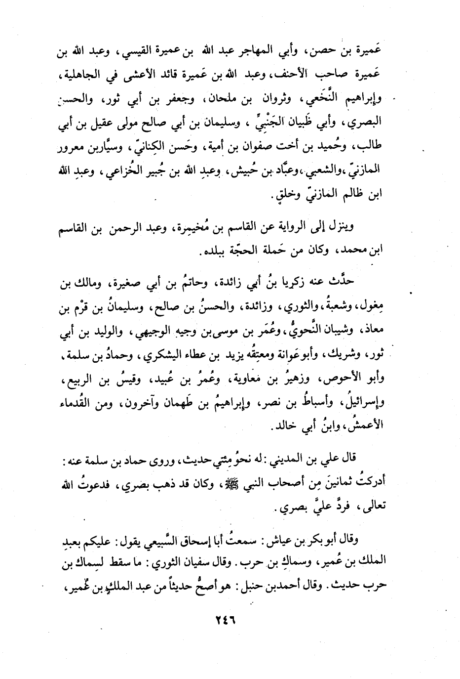 أَدْرَكْتُ ثَمَانِيْنَ مِنْ أَصْحَابِ النَّبِيِّ -صَلَّى اللَّهُ عَلَيْهِ وَسَلَّمَ- وَكَانَ قَدْ ذَهَبَ بَصَرِي، فَدعوتُ اللهَ -تَعَالَى- فَرَدَّ عَلَيَّ بَصَرِي.