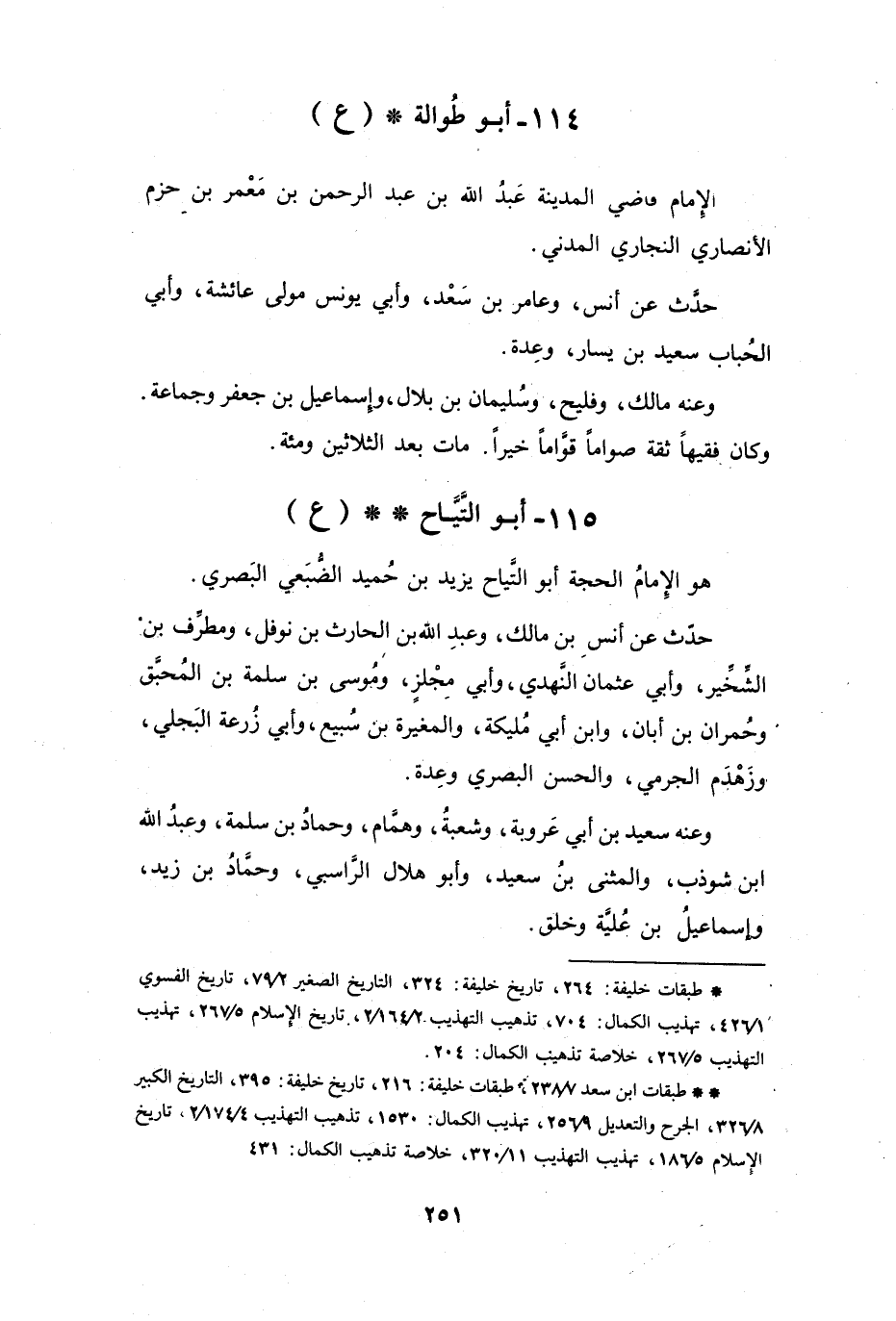 (*) طبقات خليفة: 264، تاريخ خليفة: 324، التاريخ الصغير 2 / 79، تاريخ الفسوي 1 / 426، تهذيب الكمال: 704، تذهيب التهذيب 2 / 164 / 2، تاريخ الإسلام 5 / 267، تهذيب التهذيب 5 / 267، خلاصة تذهيب الكمال: 204.