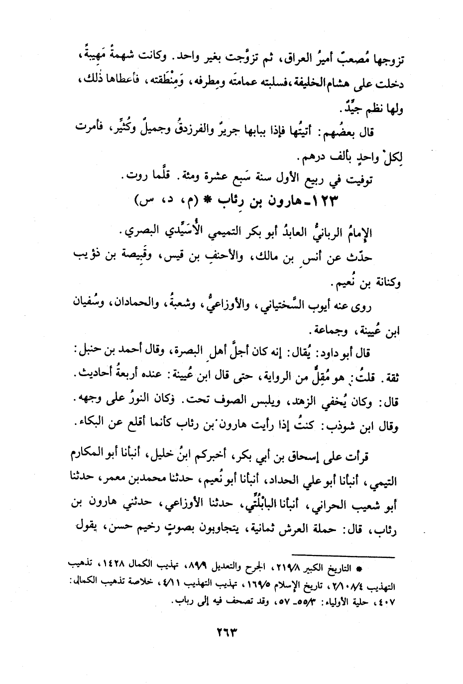 123 - هَارُوْنُ بنُ رِئَابٍ أَبُو بَكْرٍ التَّمِيْمِيُّ * (م، د، س)