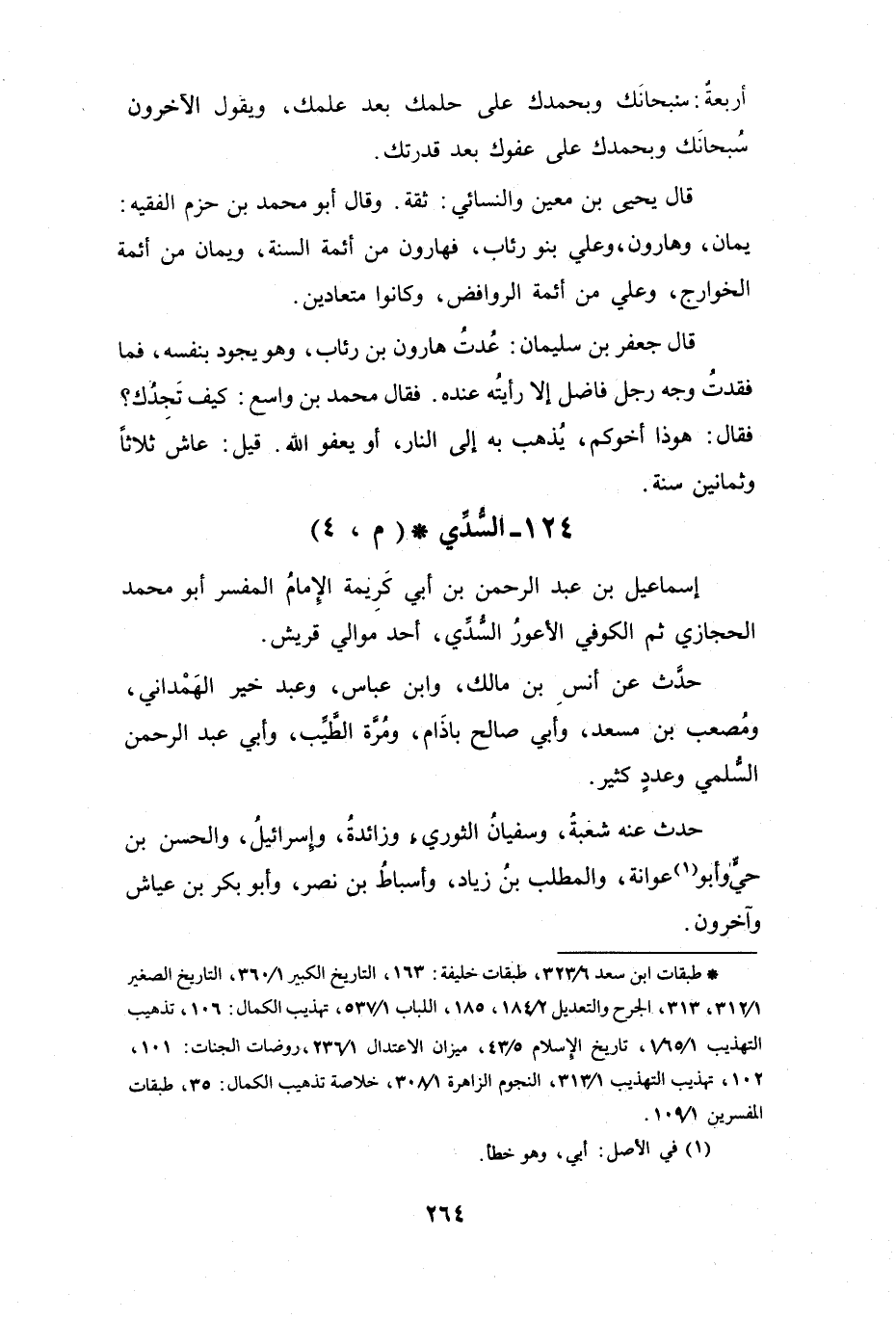 124 - السُّدِّيُّ إِسْمَاعِيْلُ بنُ عَبْدِ الرَّحْمَنِ * (م، 4)