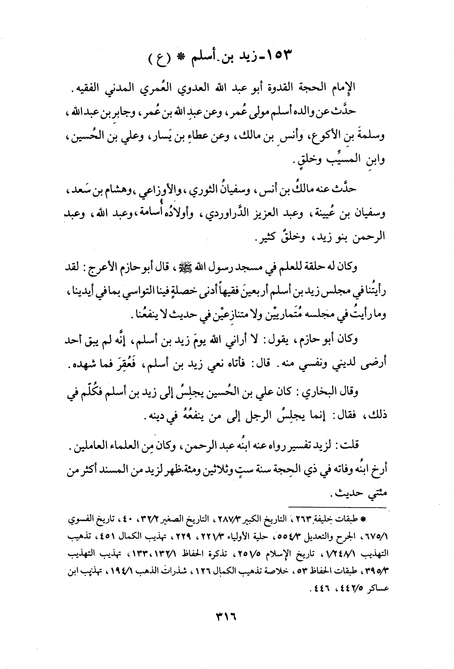 153 - زَيْدُ بنُ أَسْلَمَ أَبُو عَبْدِ اللهِ العَدَوِيُّ العُمَرِيُّ * (ع)