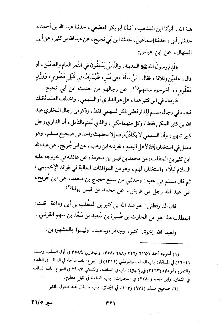 (1) أخرجه أحمد 1 / 217 و222 و288 و358، والبخاري 4 / 355 في أول السلم، ومسلم (1604) في المساقاة: باب السلم، والترمذي (1311) في البيوع: باب ما جاء في السلف في الطعام والتمر، وأبو داود (3463) في الاجازة: باب في السلف، والنسائي 7 / 290 في البيوع: باب السلف في الثمار، وابن ماجه (2280) في التجارات: باب السلف في كيل معلوم.