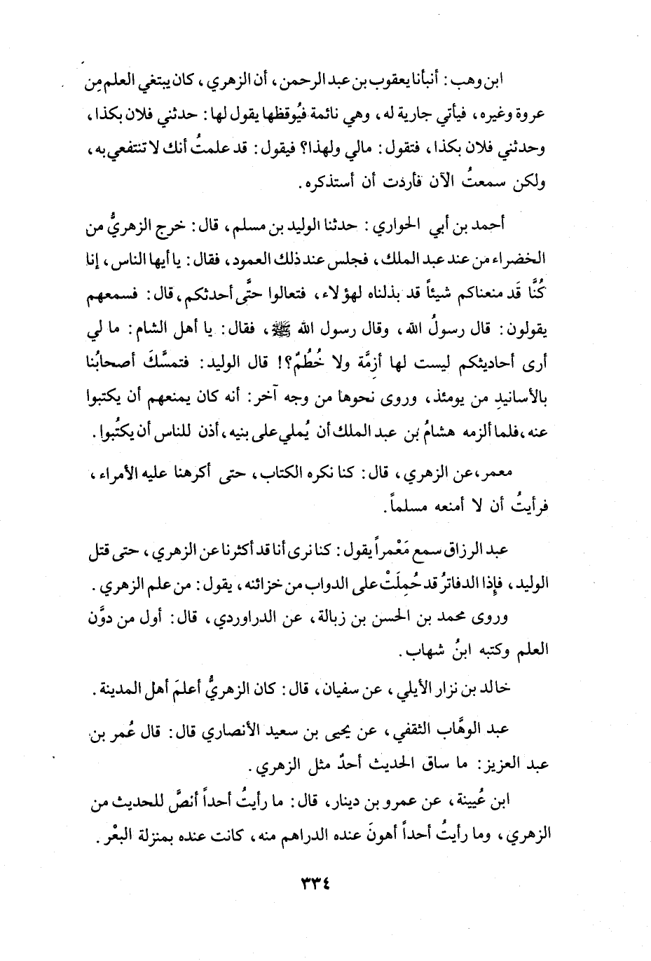 أَوَّلُ مَنْ دَوَّنَ العِلْمَ وَكَتَبَهُ: ابْنُ شِهَابٍ.