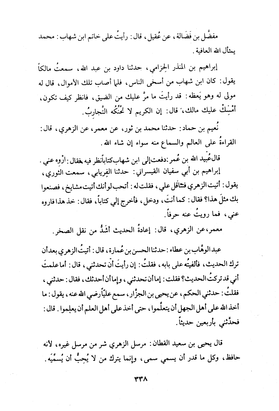 أَتَيْتُ الزُّهْرِيَّ، فَتثَاقلَ عَلَيَّ، فَقُلْتُ لَهُ: أَتُحِبُّ لَوْ أَنَّكَ أَتَيْتَ مَشَايِخَ، فَصَنَعُوا بِكَ مِثْلَ هَذَا؟