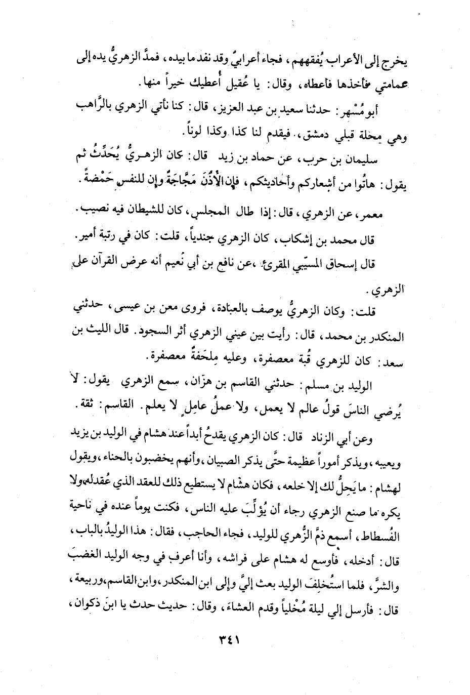 الوَلِيْدُ بنُ مُسْلِمٍ: حَدَّثَنِي القَاسِمُ بنُ هِزَّانَ، سَمِعَ الزُّهْرِيَّ يَقُوْلُ: