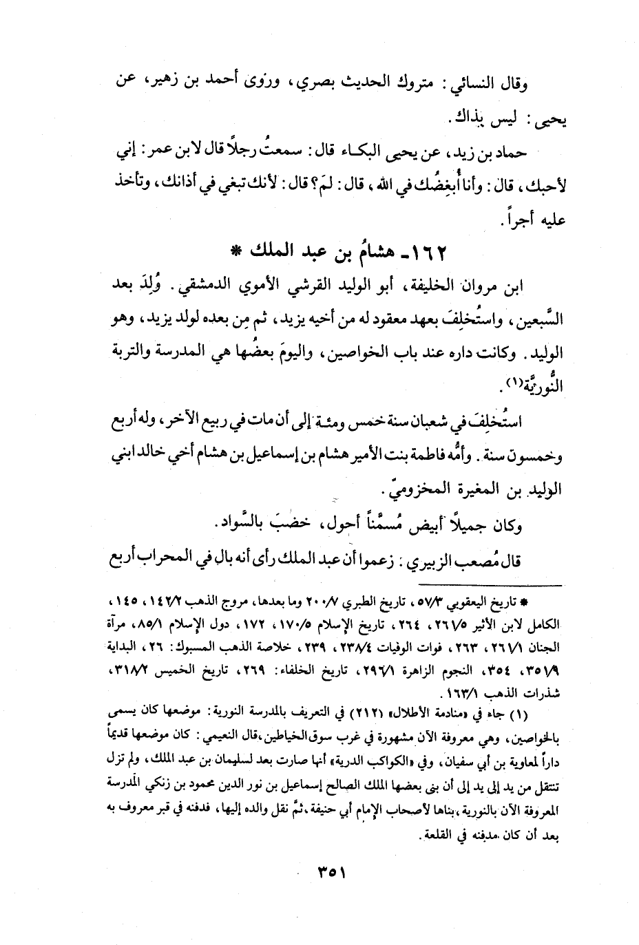 162 - هِشَامُ بنُ عَبْدِ المَلِكِ بنِ مَرْوَانَ أَبُو الوَلِيْدِ الأُمَوِيُّ
