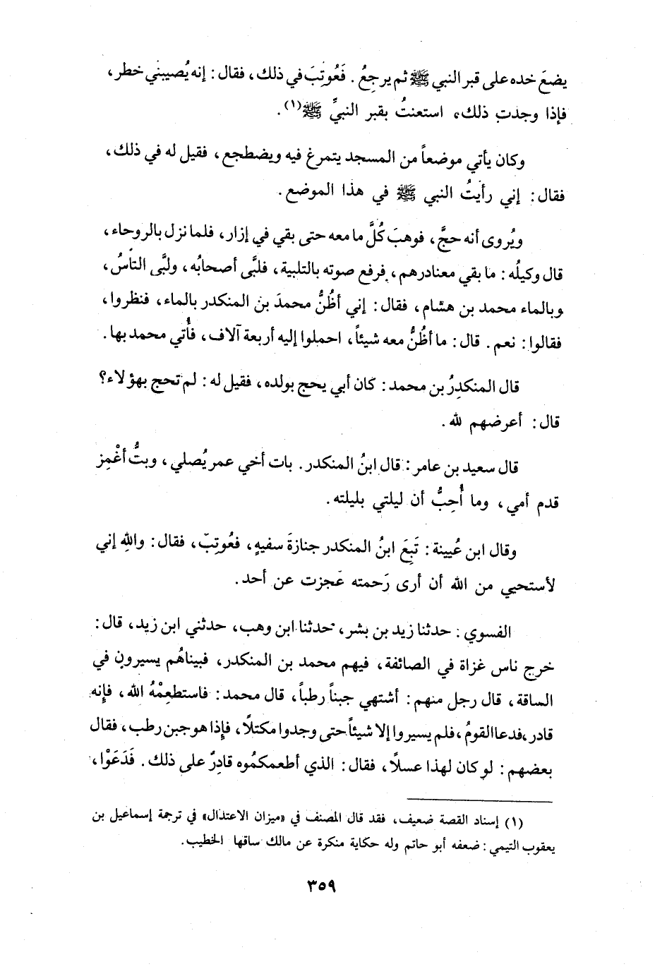 فَعُوتِبَ فِي ذَلِكَ، فَقَالَ: إِنَّهُ يُصِيْبُنِي خَطَرٌ، فَإِذَا وَجَدْتُ ذَلِكَ، اسْتَعَنْتُ بِقَبْرِ النَّبِيِّ (1) -صَلَّى اللَّهُ عَلَيْهِ وَسَلَّمَ-.