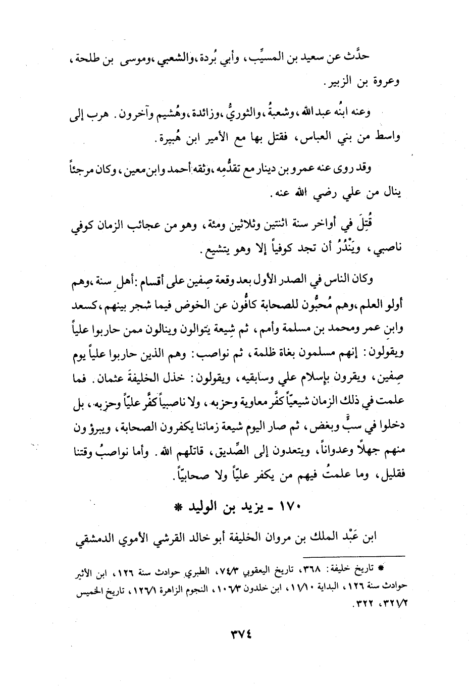 فَمَا عَلِمتُ فِي ذَلِكَ الزَّمَانِ شِيْعِيّاً كَفَّرَ مُعَاوِيَةَ وَحِزْبَهُ، وَلاَ نَاصِبِيّاً كَفَّرَ عَلِيّاً وَحِزْبَهُ، بَلْ دَخَلُوا فِي سَبٍّ وَبُغْضٍ، ثُمَّ صَارَ اليَوْمَ شِيْعَةُ زَمَانِنَا يُكَفِّرُوْنَ الصَّحَابَةَ، وَيَبْرَؤُوْنَ مِنْهُم جَهلاً وَعُدوَاناً، وَيَتَعَدُّوْنَ إِلَى الصِّدِّيْقِ - قَاتَلَهُمُ اللهُ -.