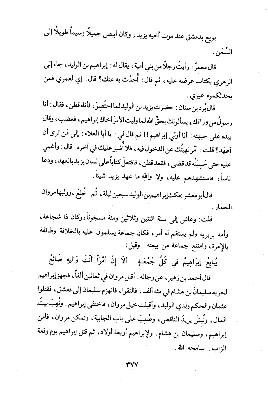 ثُمَّ قُتِلَ إِبْرَاهِيْمُ يَوْمَ وَقْعَةِ الزَّابِ - سَامَحَهُ اللهُ -.