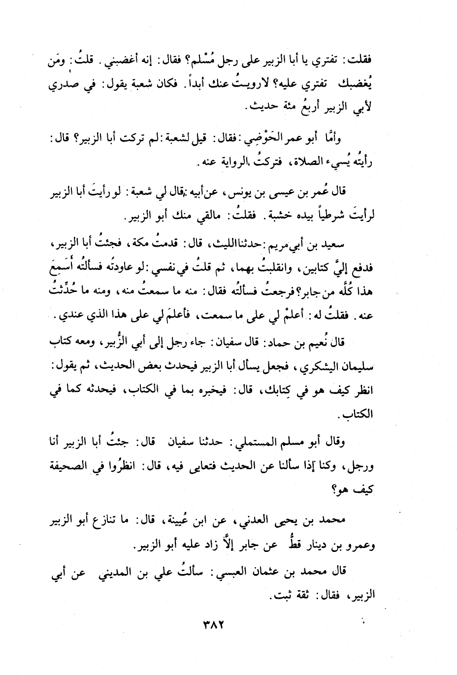قَالَ مُحَمَّدُ بنُ عُثْمَانَ العَبْسِيُّ: سَأَلْتُ عَلِيَّ بنَ المَدِيْنِيِّ عَنْ أَبِي الزُّبَيْرِ، فَقَالَ: ثِقَةٌ، ثَبْتٌ.