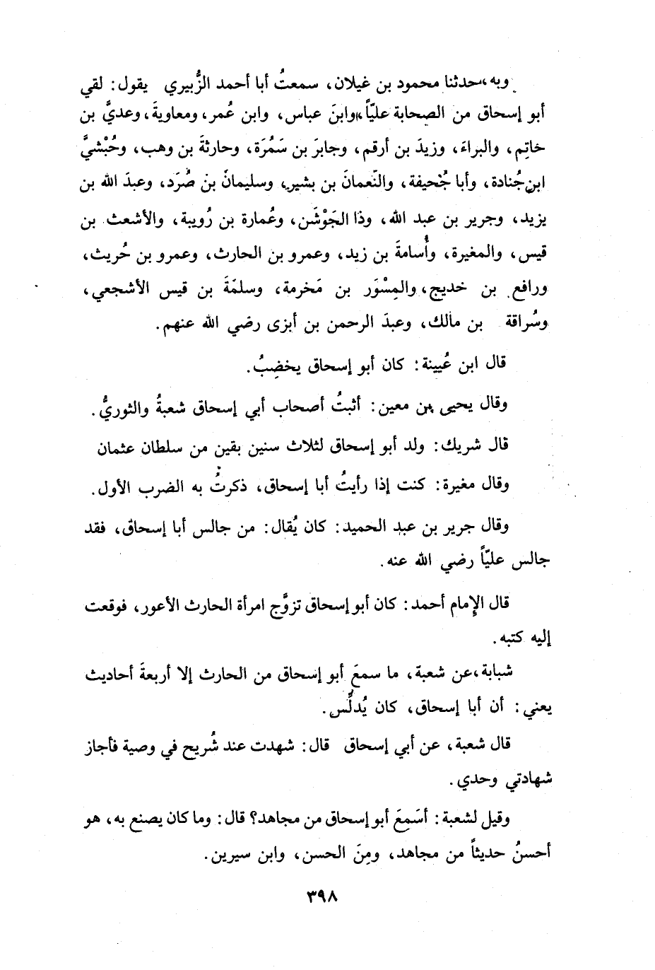 وَقَالَ جَرِيْرُ بنُ عَبْدِ الحَمَيْدِ: كَانَ يُقَالُ: مَنْ جَالَسَ أَبَا إِسْحَاقَ، فَقَدْ جَالَسَ عَلِيّاً -رَضِيَ اللهُ عَنْهُ-.