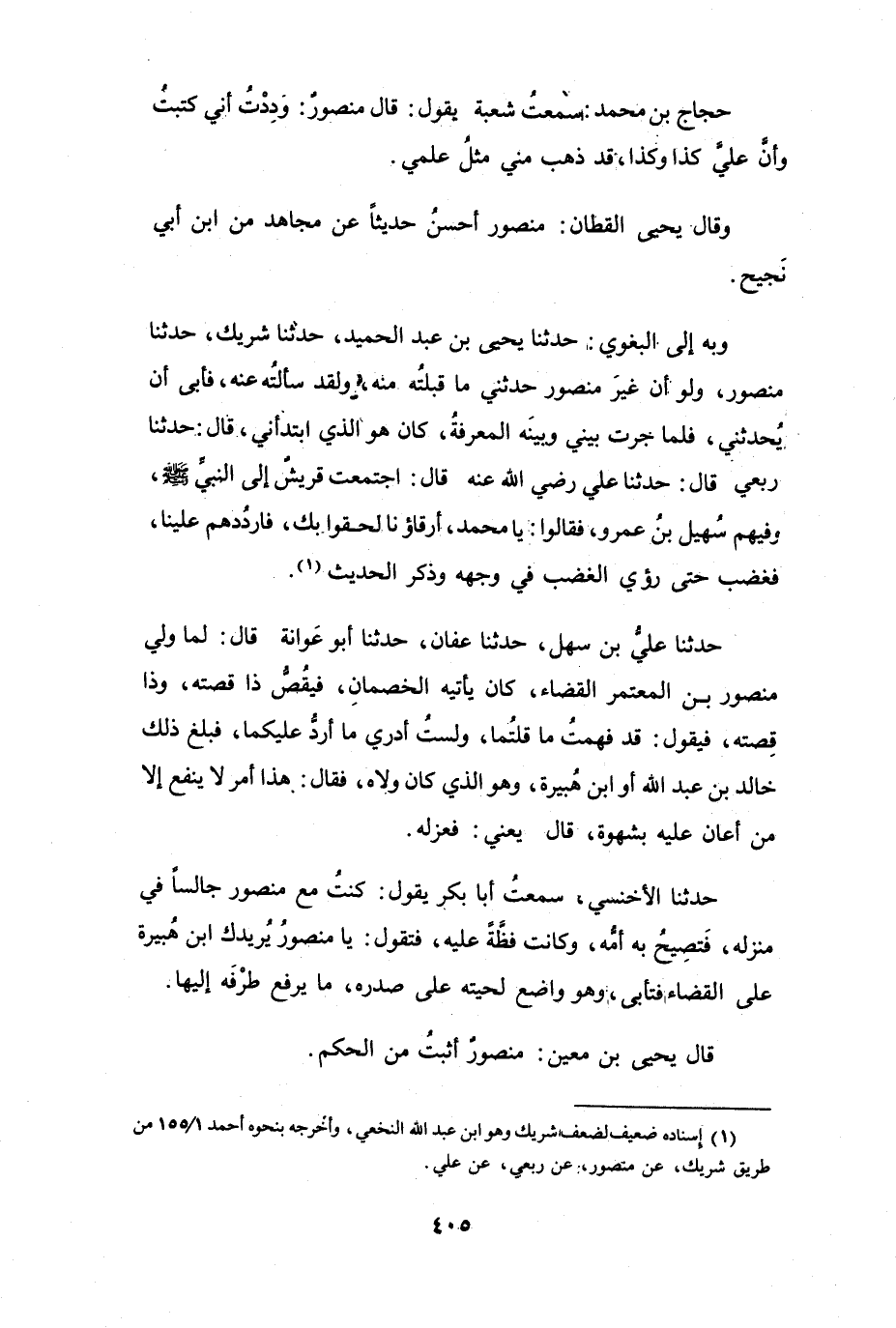 وَبِهِ: إِلَى البَغَوِيِّ: حَدَّثَنَا يَحْيَى بنُ عَبْدِ الحَمَيْدِ، حَدَّثَنَا شَرِيْكٌ، حَدَّثَنَا مَنْصُوْرٌ - وَلَوْ أَنَّ غَيْرَ مَنْصُوْرٍ حَدَّثَنِي مَا قَبِلتُه مِنْهُ، وَلَقَدْ سَأَلتُه عَنْهُ، فَأَبَى أَنْ يُحَدِّثَنِي، فَلَمَّا جَرتْ بَيْنِي وَبَيْنَه المَعْرِفَةُ، كَانَ هُوَ الَّذِي ابْتَدَأَنِي - قَالَ: