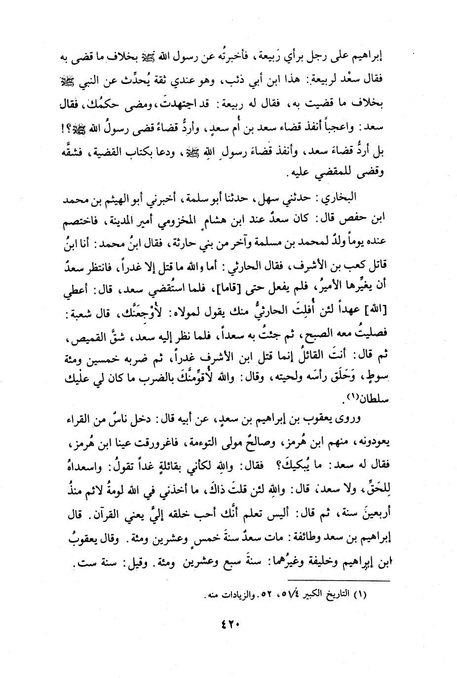 فَقَالَ سَعْدٌ: وَاعَجَباً! أُنفِذُ قَضَاءَ سَعْدِ بنِ أُمِّ سَعْدٍ، وَأَرُدُّ قَضَاءً قَضَى رَسُوْلُ اللهِ -صَلَّى اللَّهُ عَلَيْهِ وَسَلَّمَ-؟! بَلْ أَردُّ قَضَاءَ سَعْدٍ، وَأُنفِذُ قَضَاءَ رَسُوْلِ اللهِ -صَلَّى اللَّهُ عَلَيْهِ وَسَلَّمَ-.