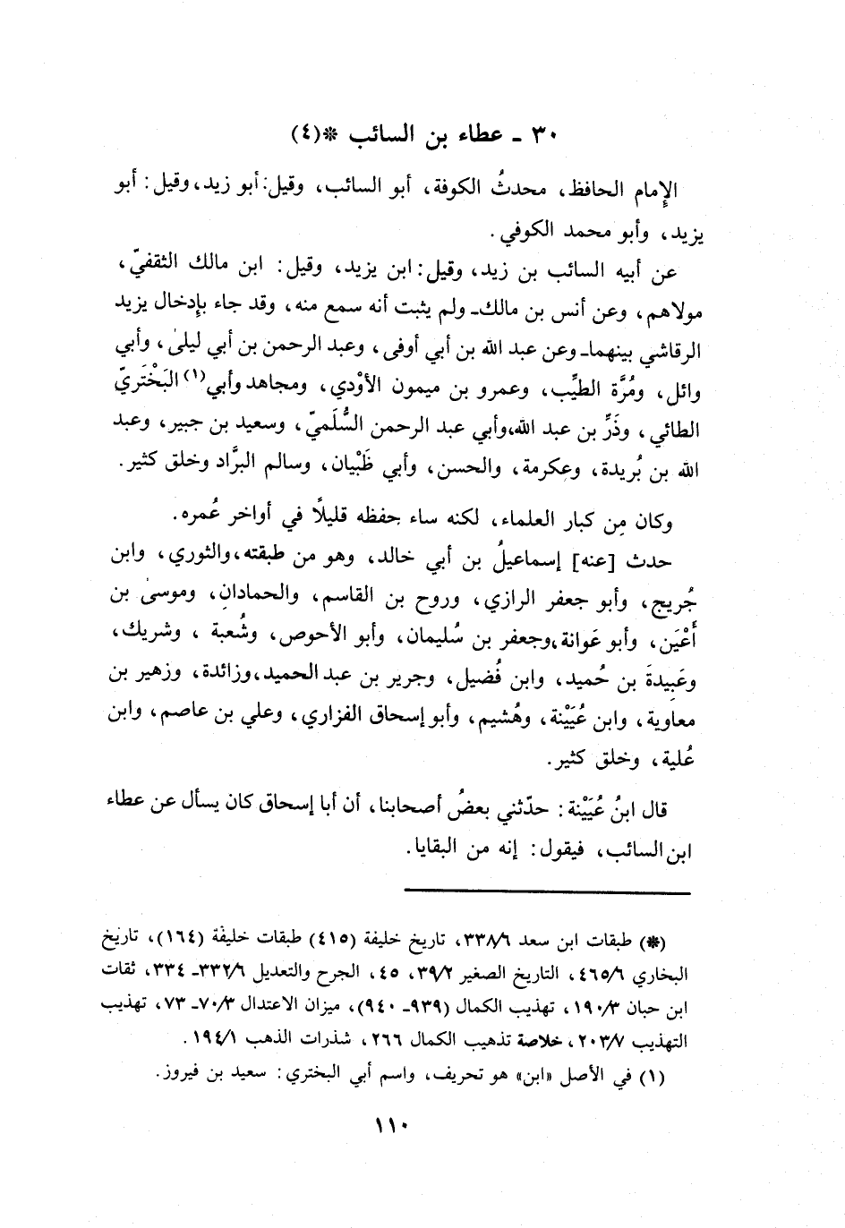 30 - عَطَاءُ بنُ السَّائِبِ الثَّقَفِيُّ مَوْلاَهُم الكُوْفِيُّ * (4)