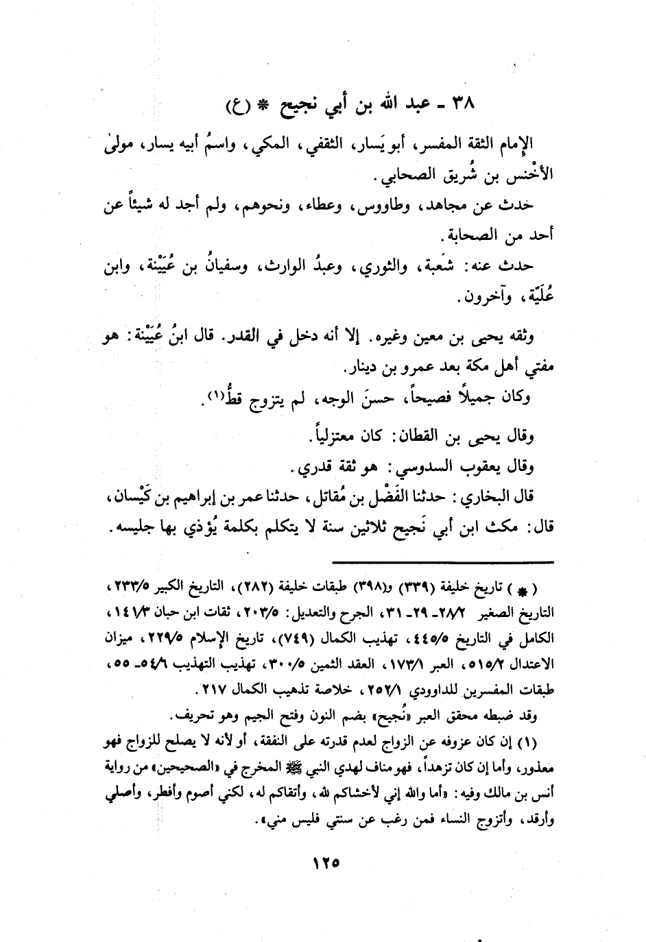 مَكَثَ ابْنُ أَبِي نَجِيْحٍ ثَلاَثِيْنَ سَنَةً لاَ يَتَكَلَّمُ بِكَلِمَةٍ يُؤذِي بِهَا جَلِيْسَه.