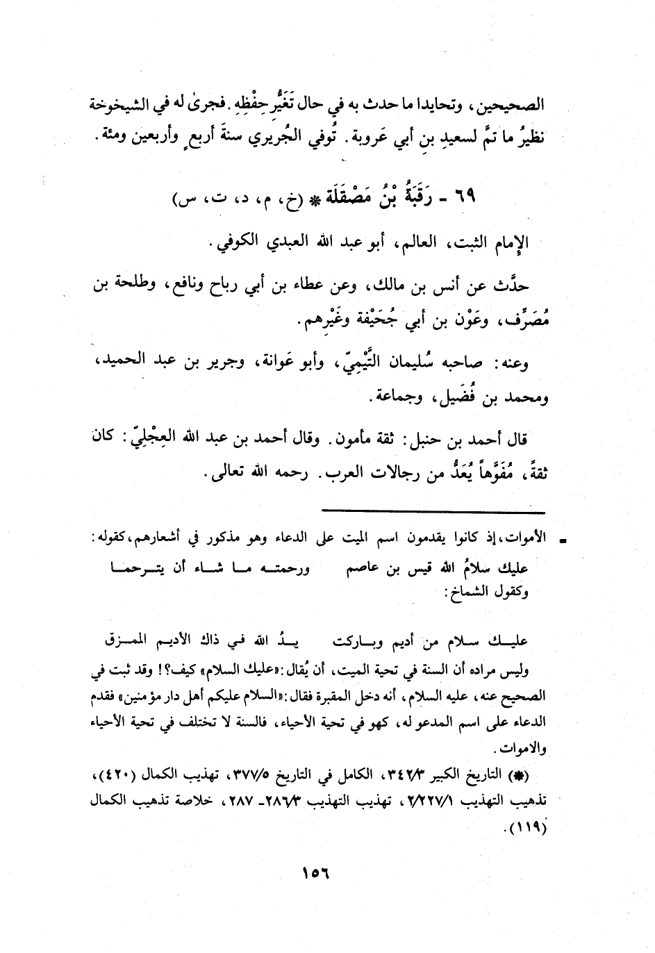 (*) التاريخ الكبير 3 / 342، الكامل في التاريخ 5 / 377، تهذيب الكمال (420) ، تذهيب التهذيب 1 / 227 / 2، تهذيب التهذيب 3 / 286 - 287، خلاصة تذهيب الكمال (119) .