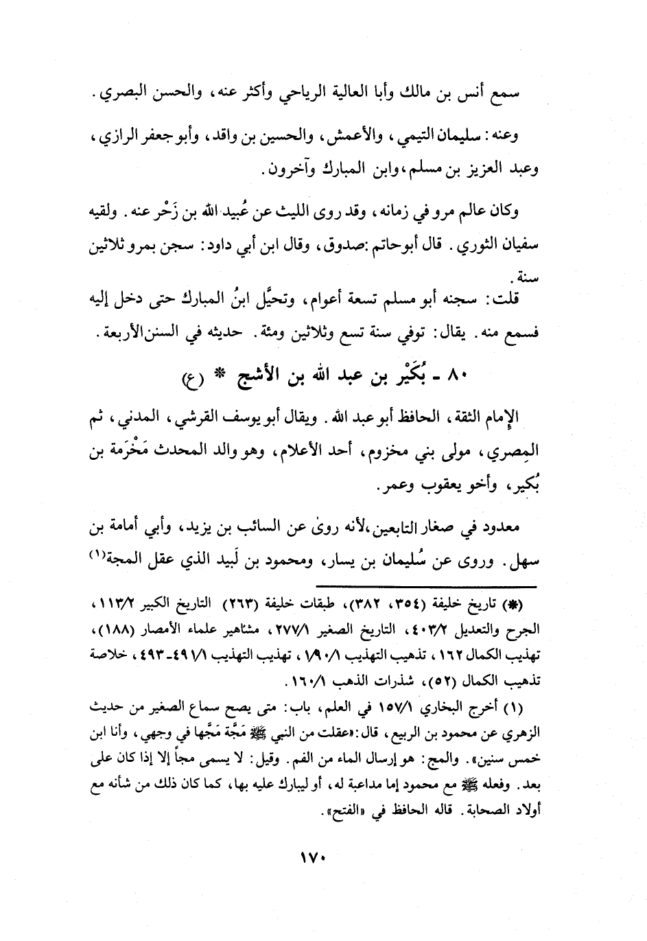 80 - بُكَيْرُ بنُ عَبْدِ اللهِ بنِ الأَشَجِّ القُرَشِيُّ المَدَنِيُّ * (ع)