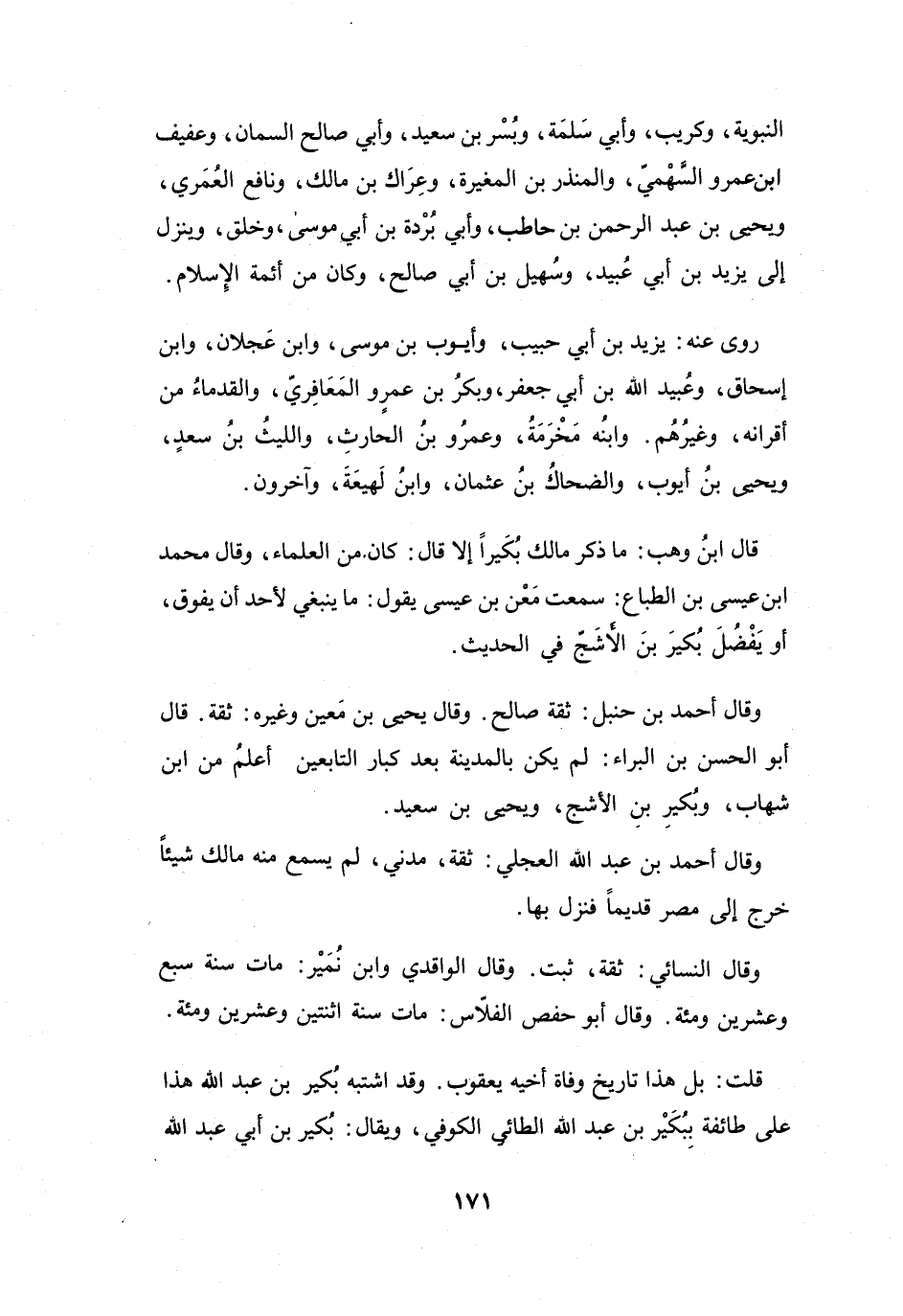 مَا يَنْبَغِي لأَحَدٍ أَنْ يَفُوْقَ أَوْ يَفْضُلَ بُكَيْرَ بنَ الأَشَجِّ فِي الحَدِيْثِ.