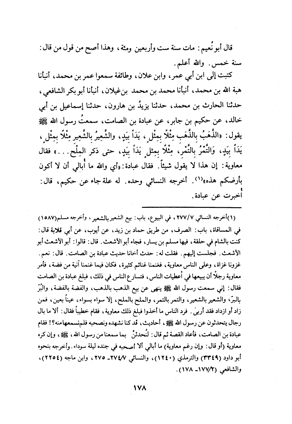 (1) أخرجه النسائي 7 / 277، في البيوع، باب: بيع الشعير بالشعير، وأخرجه مسلم (1587) في المساقاة، باب: الصرف، من طريق حماد بن زيد، عن أيوب، عن أبي قلابة قال: كنت بالشام في حلقة، فيها مسلم بن يسار، فجاء أبو الأشعث.
