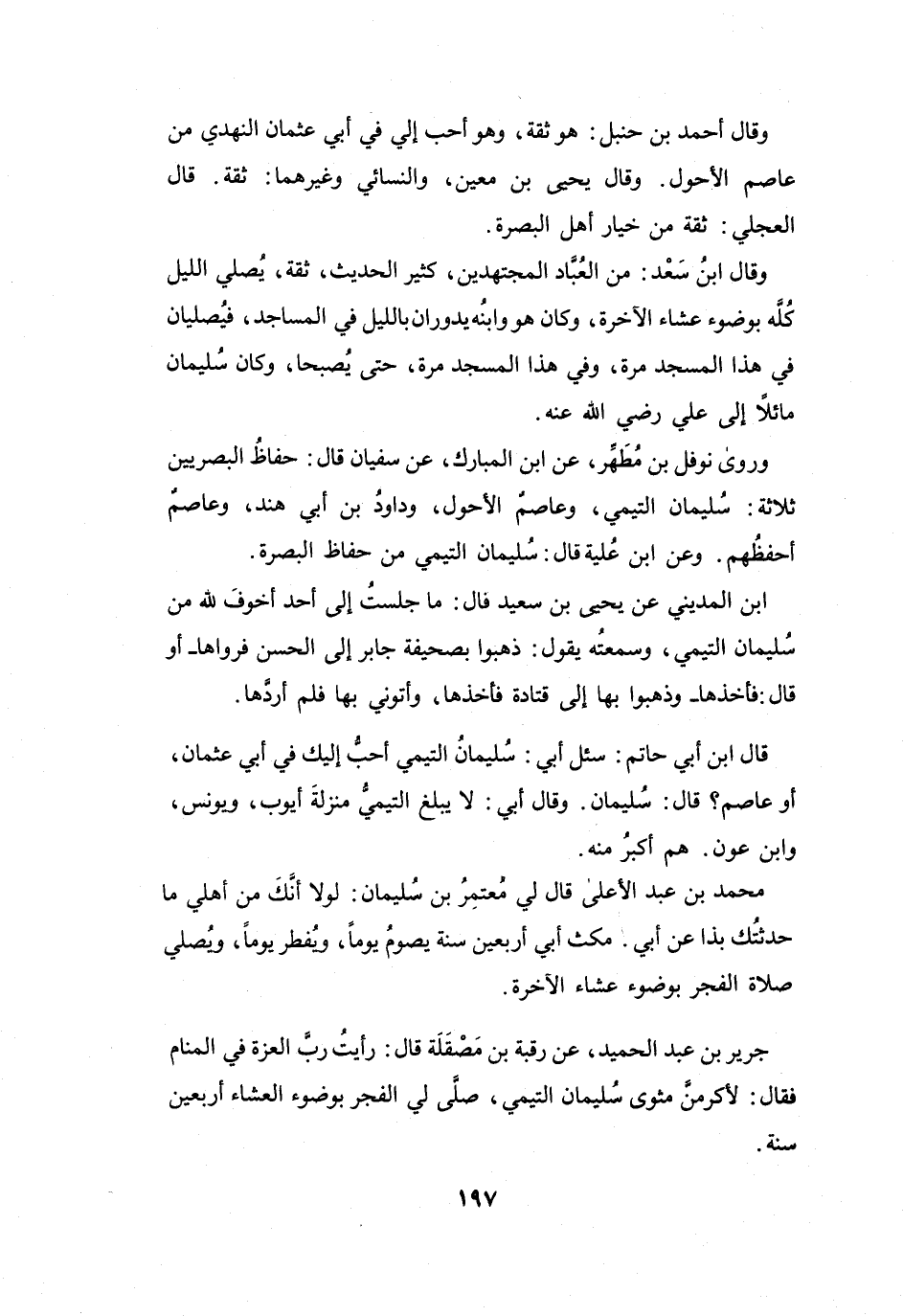 وَعَنِ ابْنِ عُلَيَّةَ، قَالَ: سُلَيْمَانُ التَّيْمِيُّ مِنْ حُفَّاظِ البَصْرَةِ.
