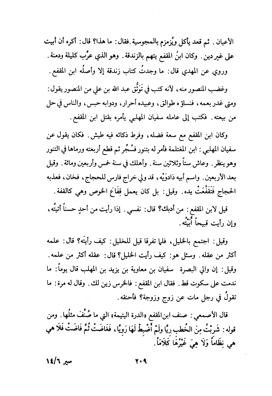 وَكَانَ ابْنُ المُقَفَّعِ يُتَّهَمُ بِالزَّنْدَقَةِ، وَهُوَ الَّذِي عَرَّبَ (كَلِيْلَةَ وَدِمْنَةَ) .