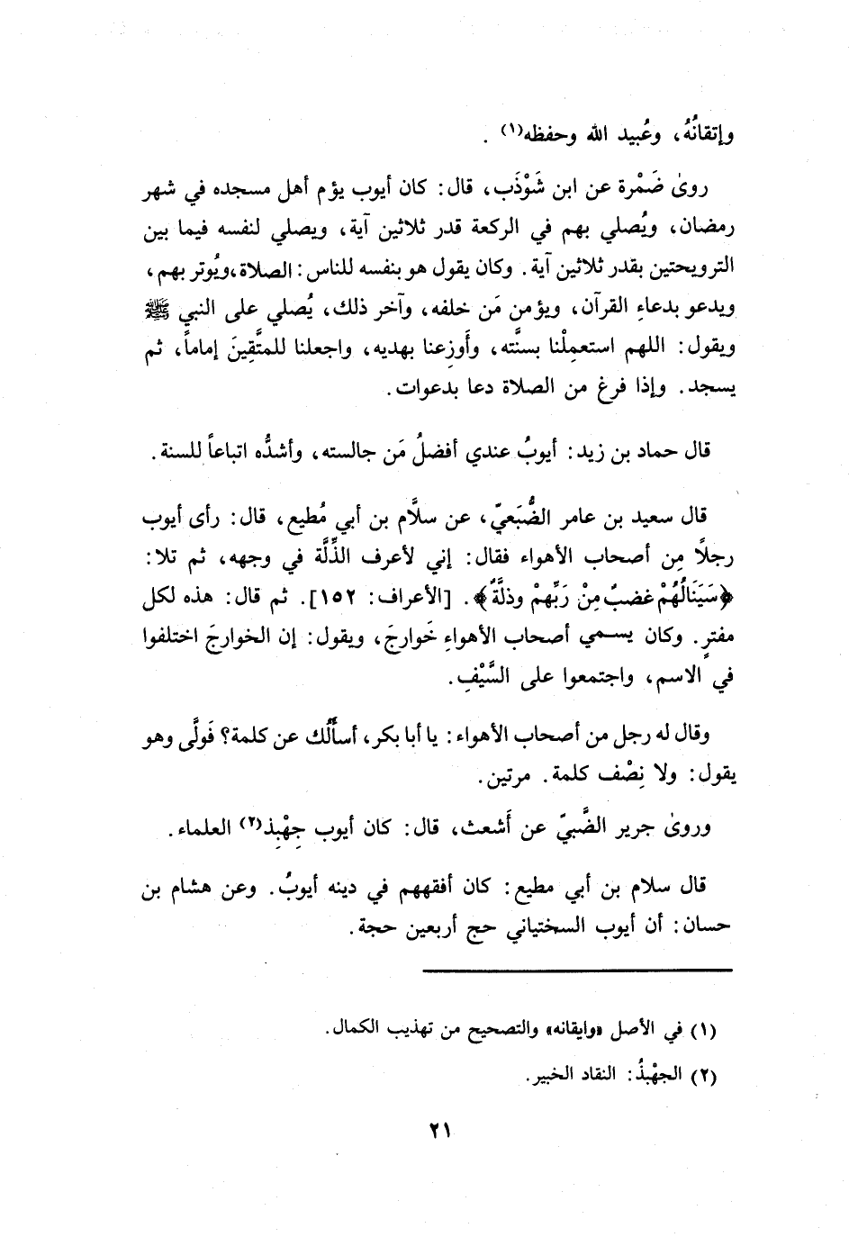 رَأَى أَيُّوْبُ رَجُلاً مِنْ أَصْحَابِ الأَهْوَاءِ، فَقَالَ: إِنِّي لأَعرِفُ الذِّلَّةَ فِي وَجْهِه، ثُمَّ تَلاَ: {سَيَنَالُهُمْ غَضَبٌ مِنْ رَبِّهِم وَذِلَّةٌ} [الأَعْرَافُ: 152] .