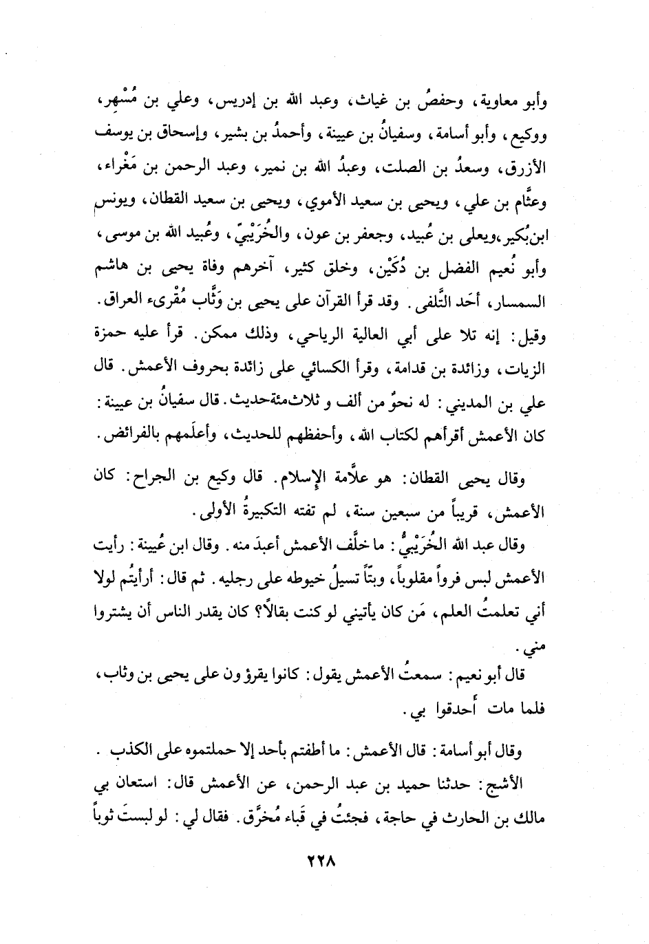 قَالَ سُفْيَانُ بنُ عُيَيْنَةَ: كَانَ الأَعْمَشُ أَقْرَأَهُم لِكِتَابِ اللهِ، وَأَحْفَظَهُم لِلْحَدِيْثِ، وَأَعْلَمَهُم بِالفَرَائِضِ.