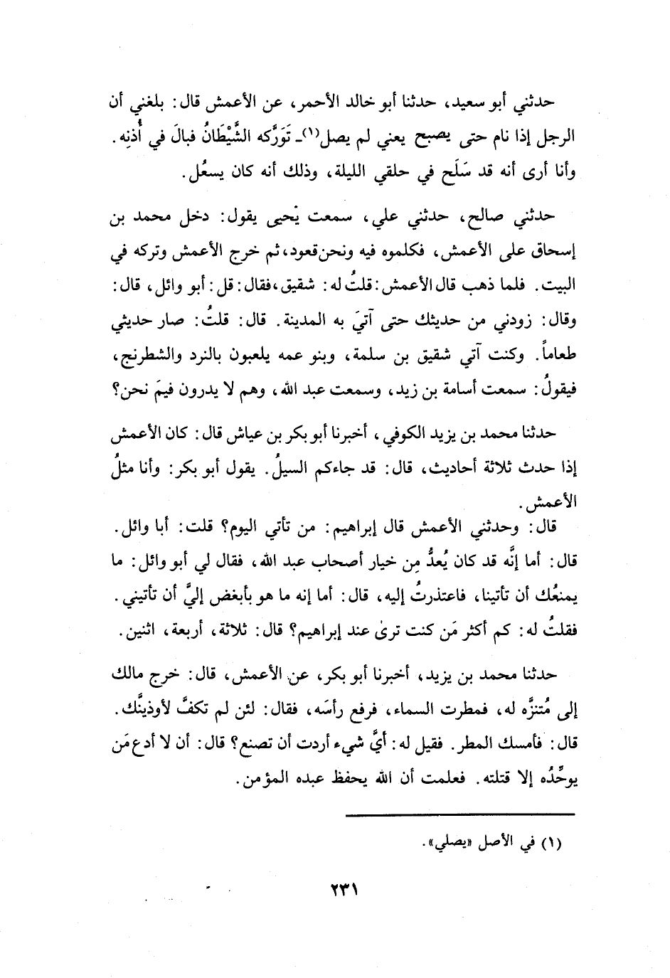 حَدَّثَنِي أَبُو سَعِيْدٍ، حَدَّثَنَا أَبُو خَالِدٍ الأَحْمَرُ، عَنِ الأَعْمَشِ، قَالَ: